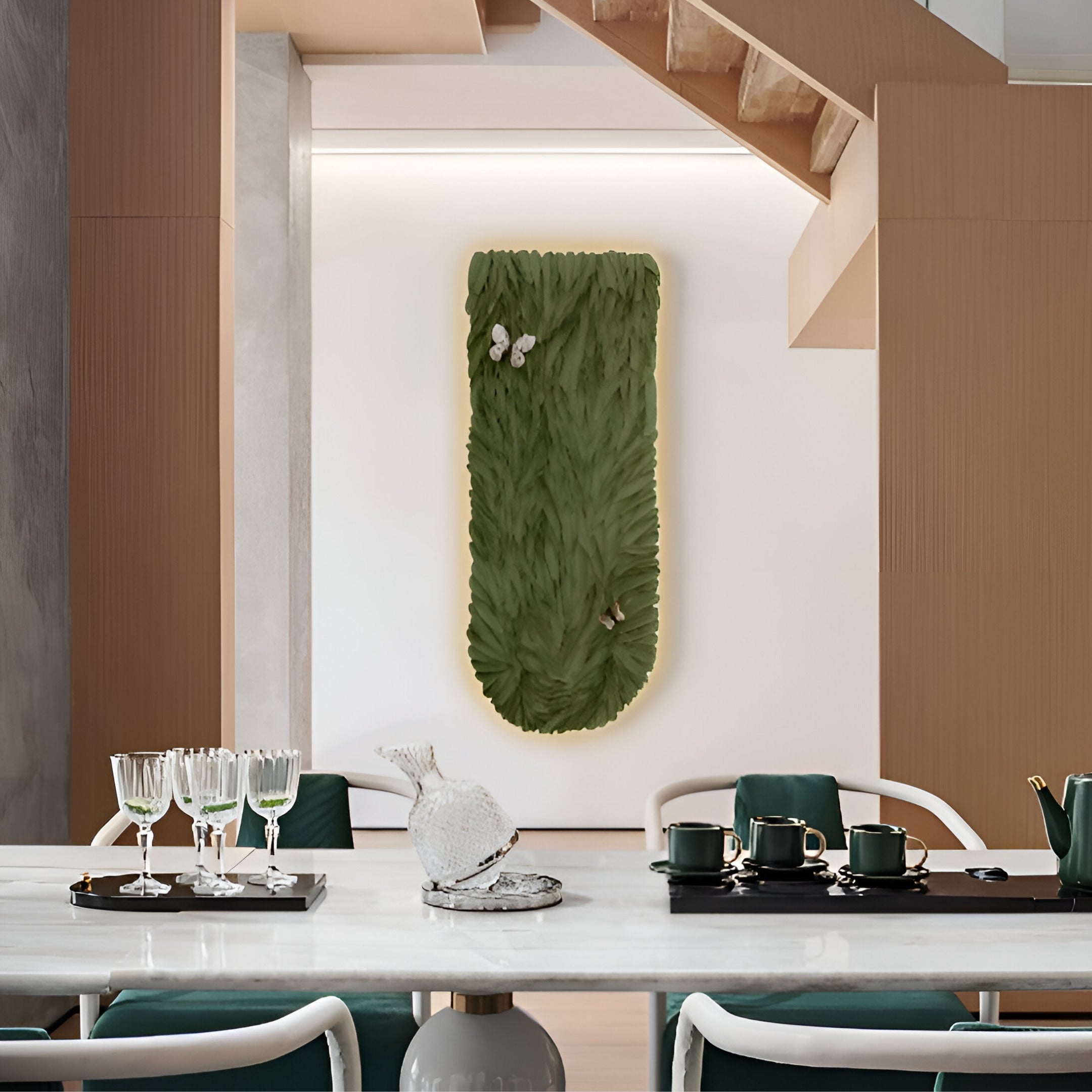 The Blossom Vibrant Green Leather 3D LED Wall Art introduces a fresh and dynamic presence to contemporary interiors. Its rich green leather surface, intricately arranged in a three-dimensional design, creates a bold visual statement while maintaining a sense of organic elegance. The frameless design accentuates its modern aesthetic, allowing it to seamlessly complement a variety of decor styles. The interplay of texture and light across the sculpted leather surface enhances the depth and movement of the piece, making it an eye-catching addition to residential and commercial spaces alike.