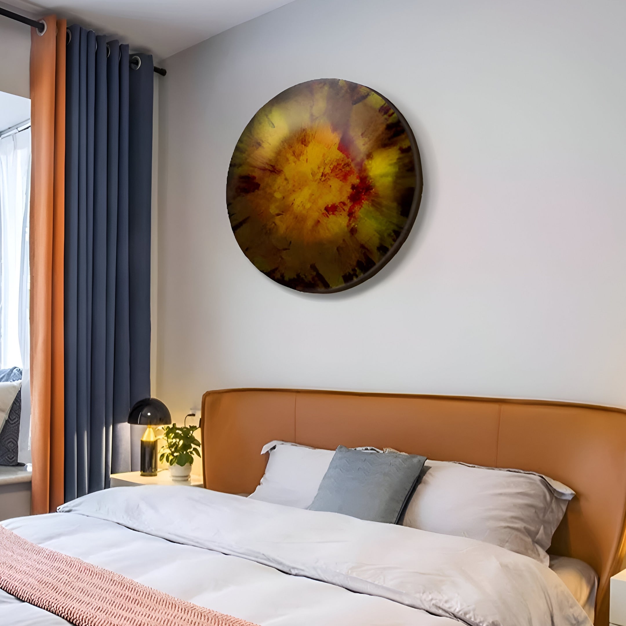 Genesis Sunburst 3D Resin Crystal Porcelain LED Wall Art is an extraordinary fusion of modern design and superior craftsmanship, perfect for adding warmth and vibrancy to any interior. This stunning artwork combines premium resin and crystal porcelain, meticulously layered to create a captivating sunburst pattern that radiates elegance and sophistication. The dynamic design showcases intricate textures and vibrant hues that reflect and refract light beautifully. Integrated LED lighting enhances its luminous qualities, casting a warm glow that highlights every detail, making it a true statement piece.