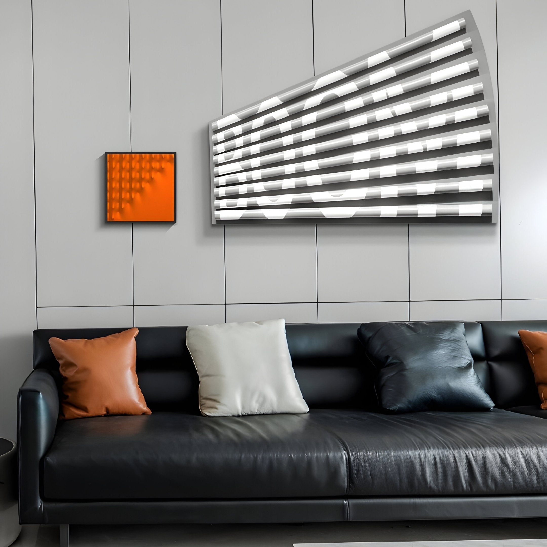 This artwork emphasises simplicity and sophistication through its monochromatic palette and clean lines. The precise carving of the 'BOOM' motif draws attention without overwhelming the space, while the grooved detailing introduces a sense of movement and texture. Its elongated form makes it suitable for various placements, such as above a sofa, desk, or entryway. Whether used to inspire creativity in a workspace or as a focal point in a living room, this wall art blends seamlessly with modern décor styles. Designed for those who value subtle yet impactful, the Illustra BOOM Wall Art is a testament to the power of refined design. Its 3D structure adds depth, making it a conversation piece that enhances the ambience of any room.