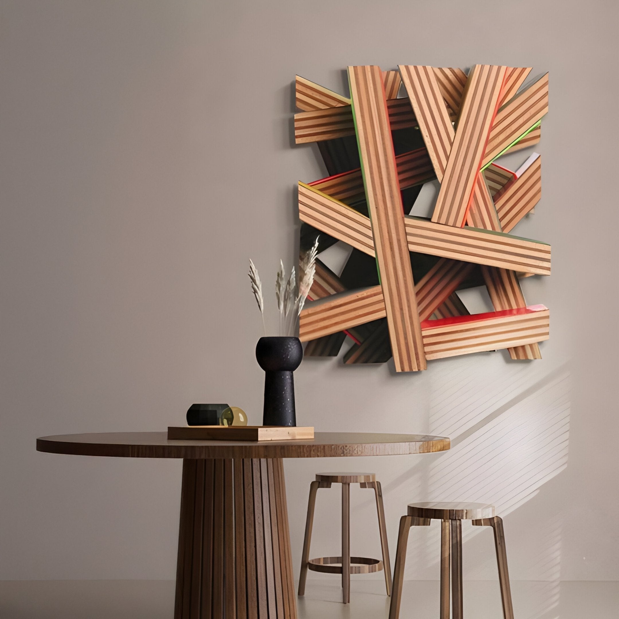 Lignos Multicolour Highlights Layered Wooden Strips 3D Wall Art