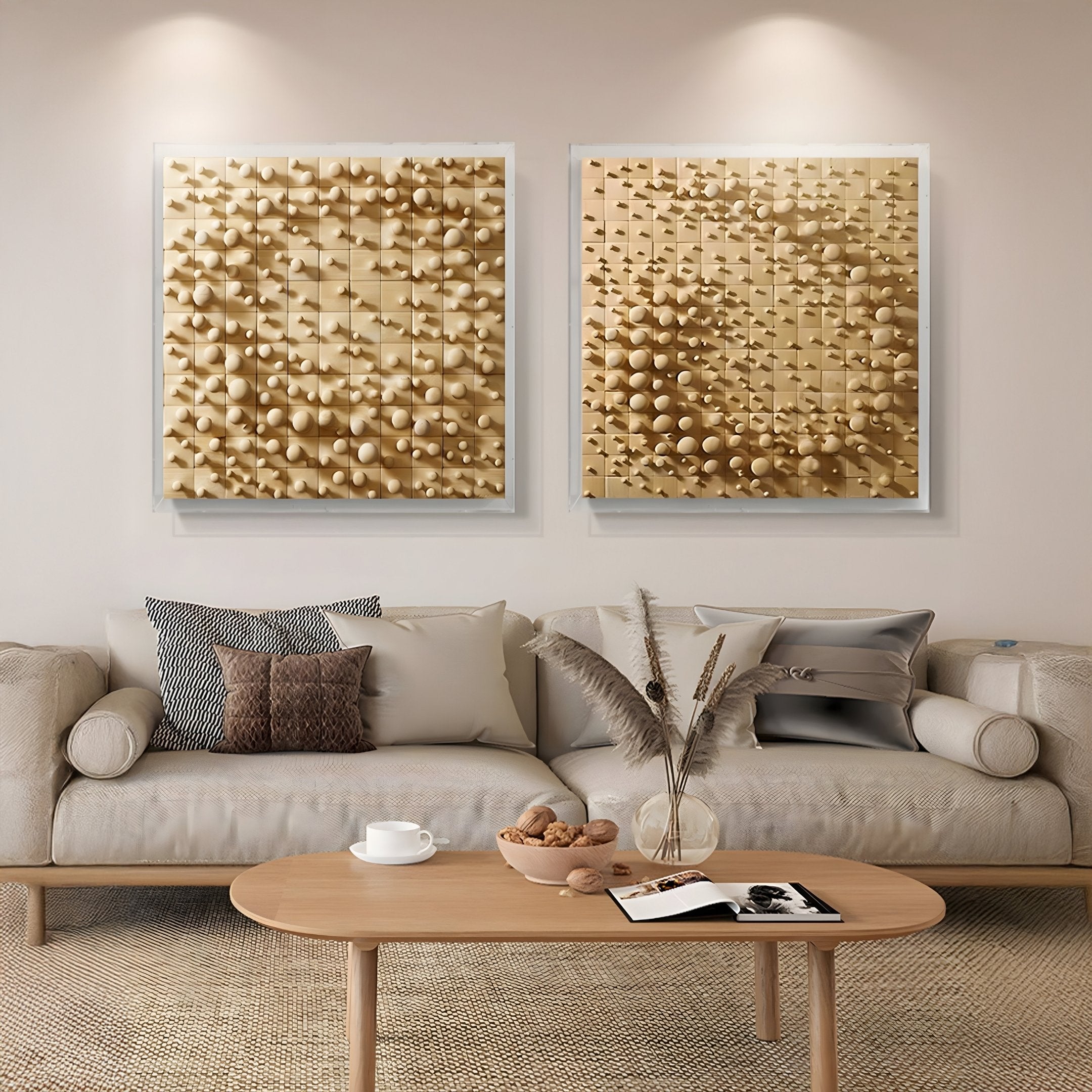 The rhythmic arrangement of spheres mimics natural movement, bringing a sense of energy and calm to your space. Each sphere is precision-crafted and positioned to create a harmonious design that engages the viewer. The acrylic box not only protects the intricate details but also adds a modern touch, making this piece suitable for living rooms, offices, or gallery-like settings. Its neutral wooden tones easily complement minimalist, Scandinavian, or industrial-style interiors while maintaining a timeless appeal. Placed against clean walls or paired with other decor, this wall art becomes a conversation starter.