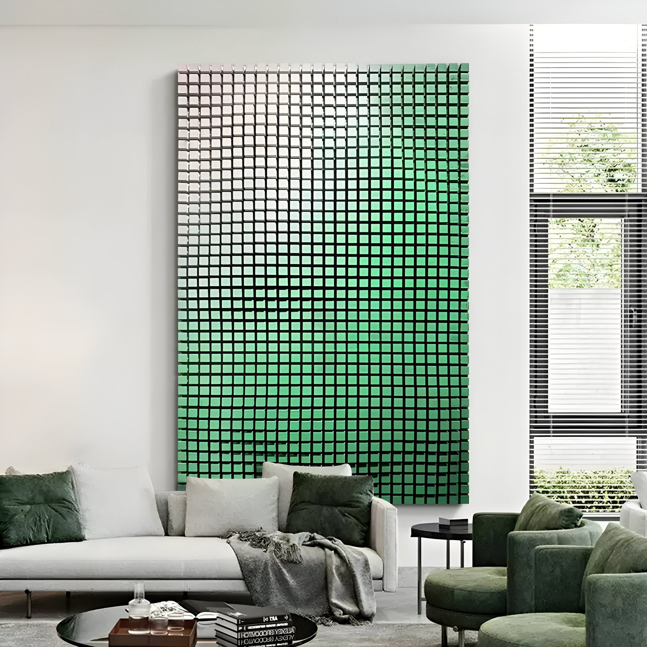 This wall art merges texture and colour to create a captivating focal point. The interplay of geometric forms and gradient shades draws attention, making it perfect for living rooms, offices, or large spaces that demand a standout feature. The green tones evoke a sense of freshness and tranquillity, harmonising effortlessly with a variety of décor styles, from contemporary to industrial. The three-dimensional layout adds an engaging sense of motion, inviting viewers to explore its intricate details. Designed with precision and care, this mosaic wall art exemplifies craftsmanship, elevating the ambiance of any room.