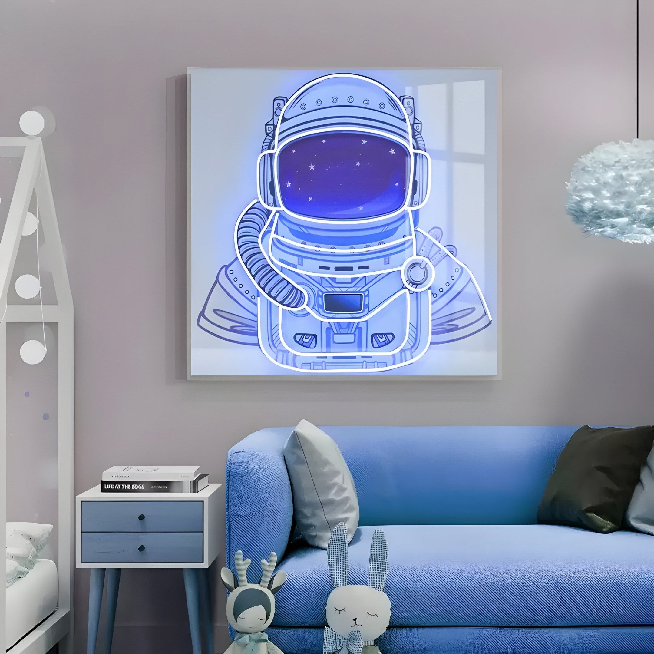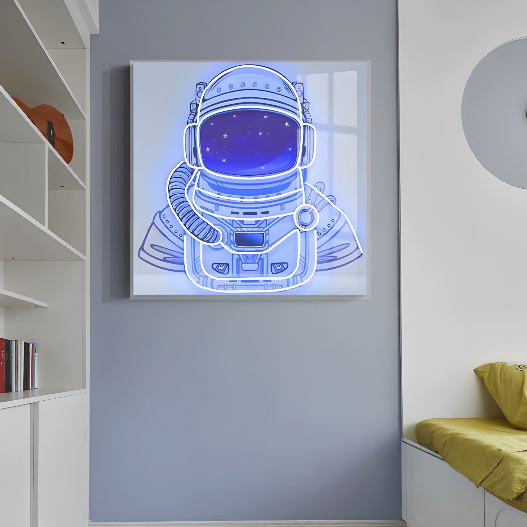 Placed in a contemporary lounge, a child’s bedroom, or a creative office environment, this piece captivates viewers at a glance. The layered acrylic design heightens realism, making the astronaut appear ready to step off the panel. Switch off overhead lights for a more dramatic look that accentuates the glowing lines. The astronaut’s visor, suit fastenings, and subtle shape distinctions all benefit from the LED backlighting. The design brings a fresh dose of cosmic inspiration to your walls without overwhelming your existing decor. Escape the ordinary through a dynamic interplay of color and light. The bright tones and 3D silhouette encourage a playful energy that energizes any setting. Create a mesmerizing atmosphere that sparks curiosity every time you pass by.