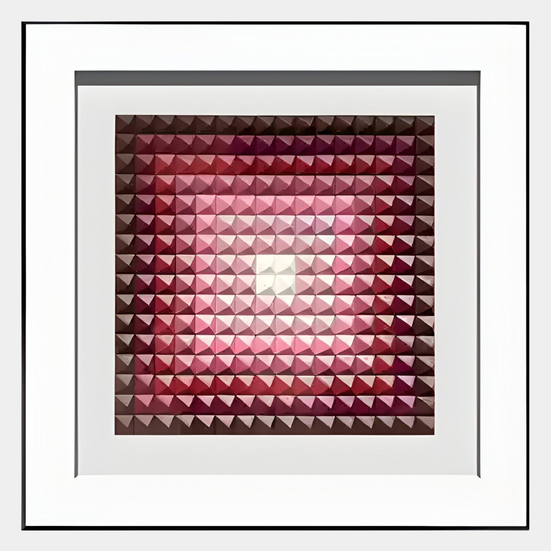 Viretta Red Gradient Pyramid Textured 3D Wooden Wall Art