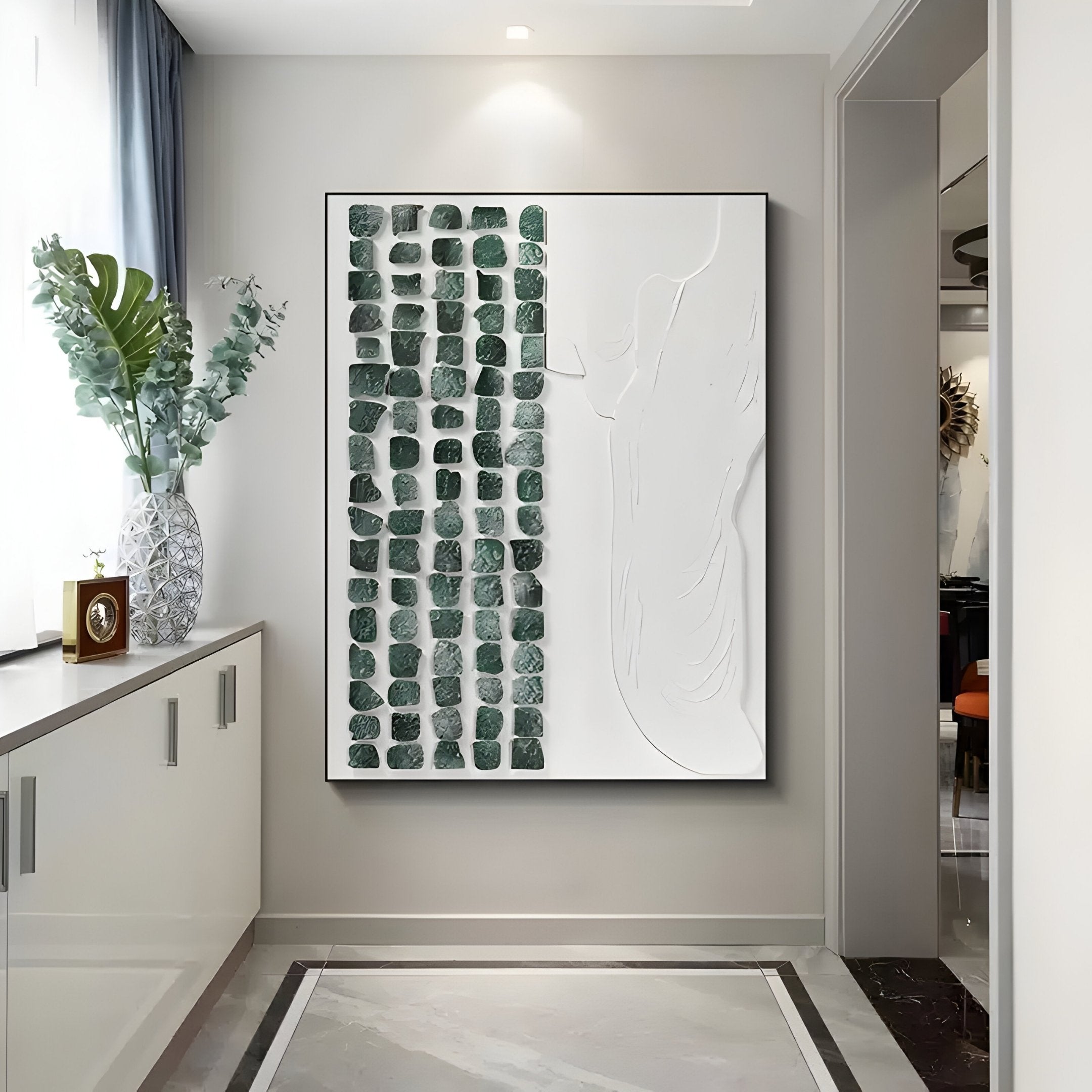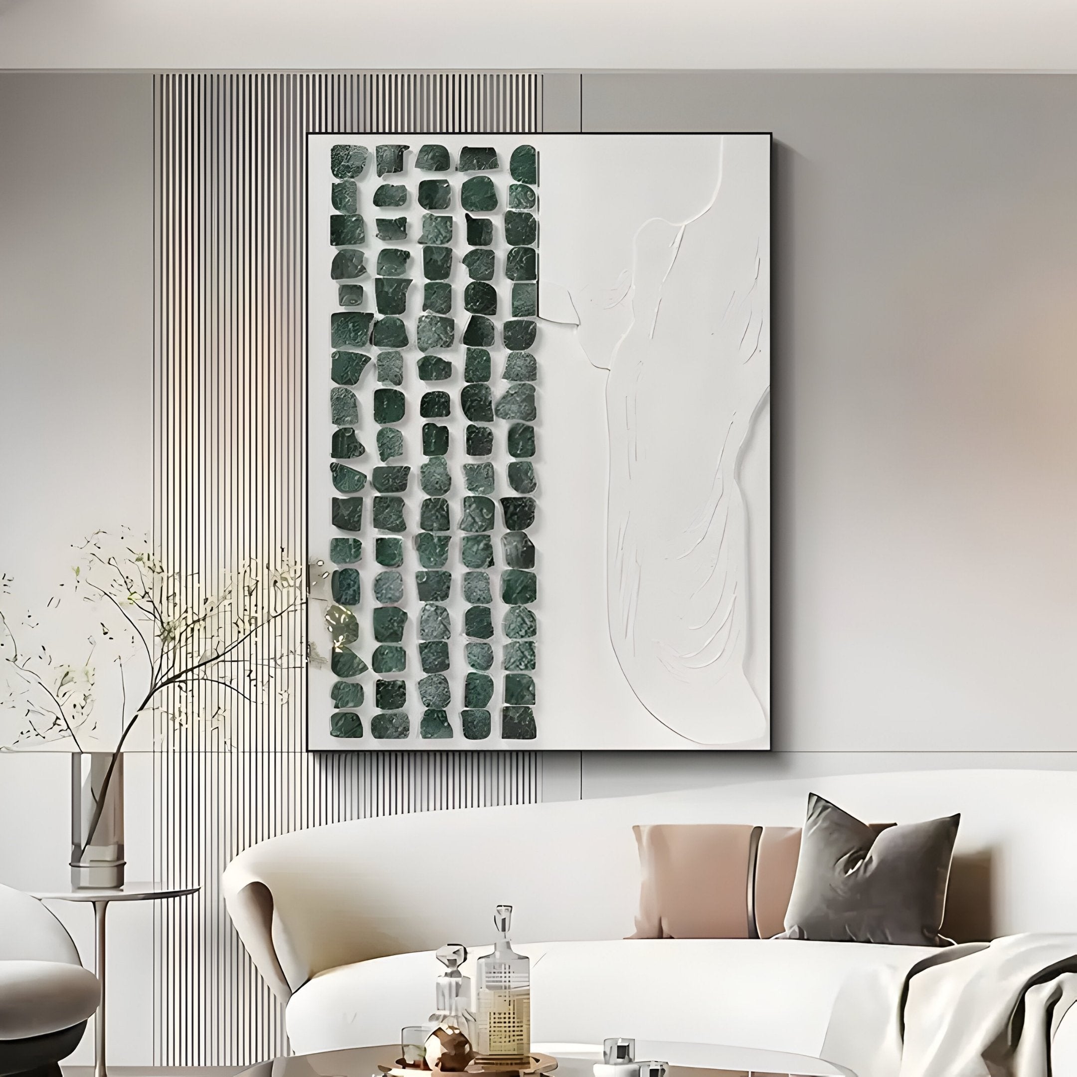 Aestilis Green & White Mosaic - A Calm Fusion of Earthy Blocks and Fluid Form