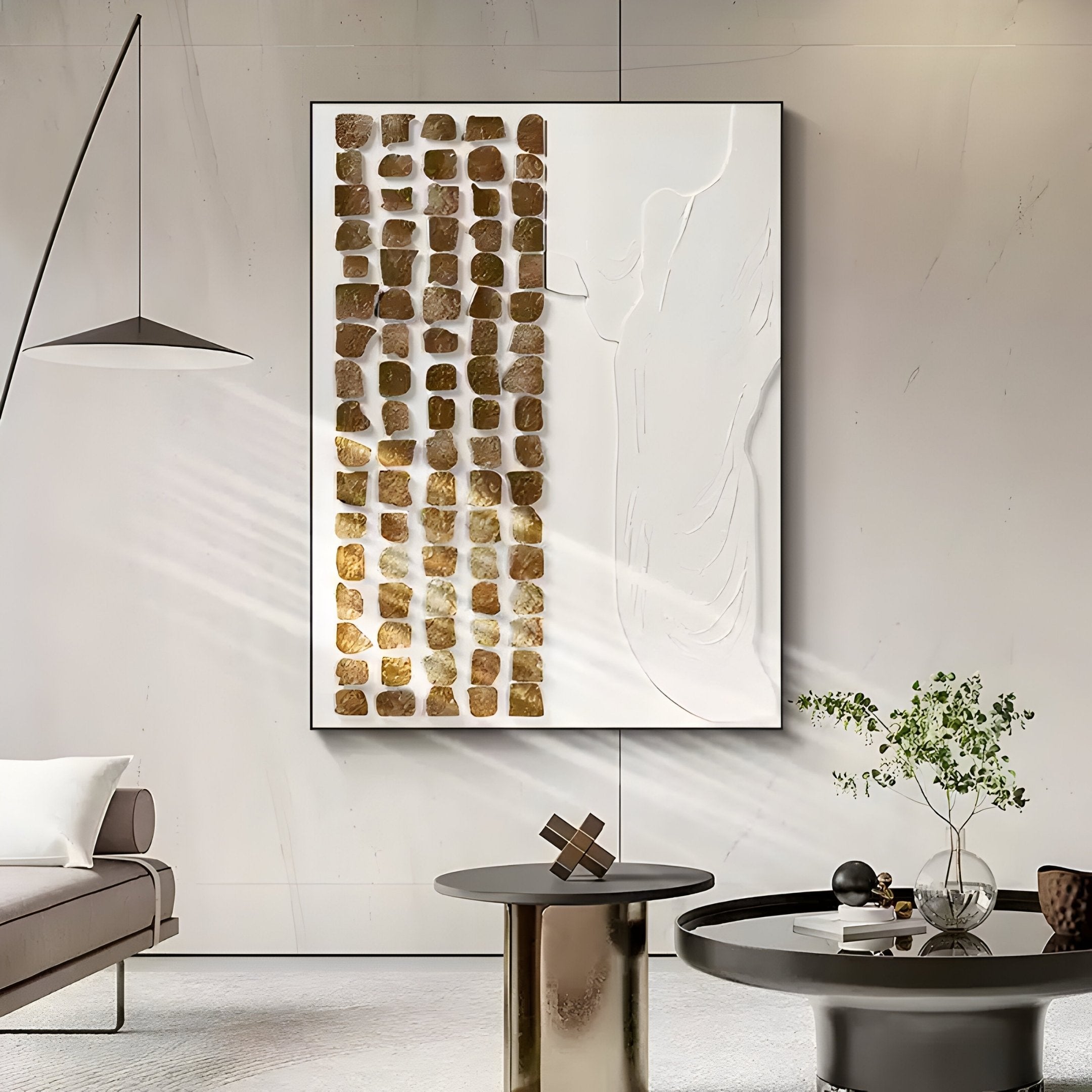 By pairing earthy tones with a crisp backdrop, this design embodies a timeless appeal that resonates with both contemporary and wabi-sabi-inspired décors. Each olive block is slightly unique, reflecting nature’s inherent irregularities and introducing a gentle hint of imperfection. At the same time, the hand-painted white portion preserves a refined air, demonstrating thoughtful craftsmanship. Form meets function in its solid wood base, ensuring the piece maintains its crisp lines and layered dimensions. Displayed in a minimalist lounge or amidst more eclectic furnishings, the mural’s neutral palette adapts effortlessly. Thanks to its calm yet intriguing composition, the Aestilis Olive & White Mosaic Wood Carving 3D Wall Art brings together natural texture and polished artistry, creating a focal point that fosters a serene yet visually engaging ambience.