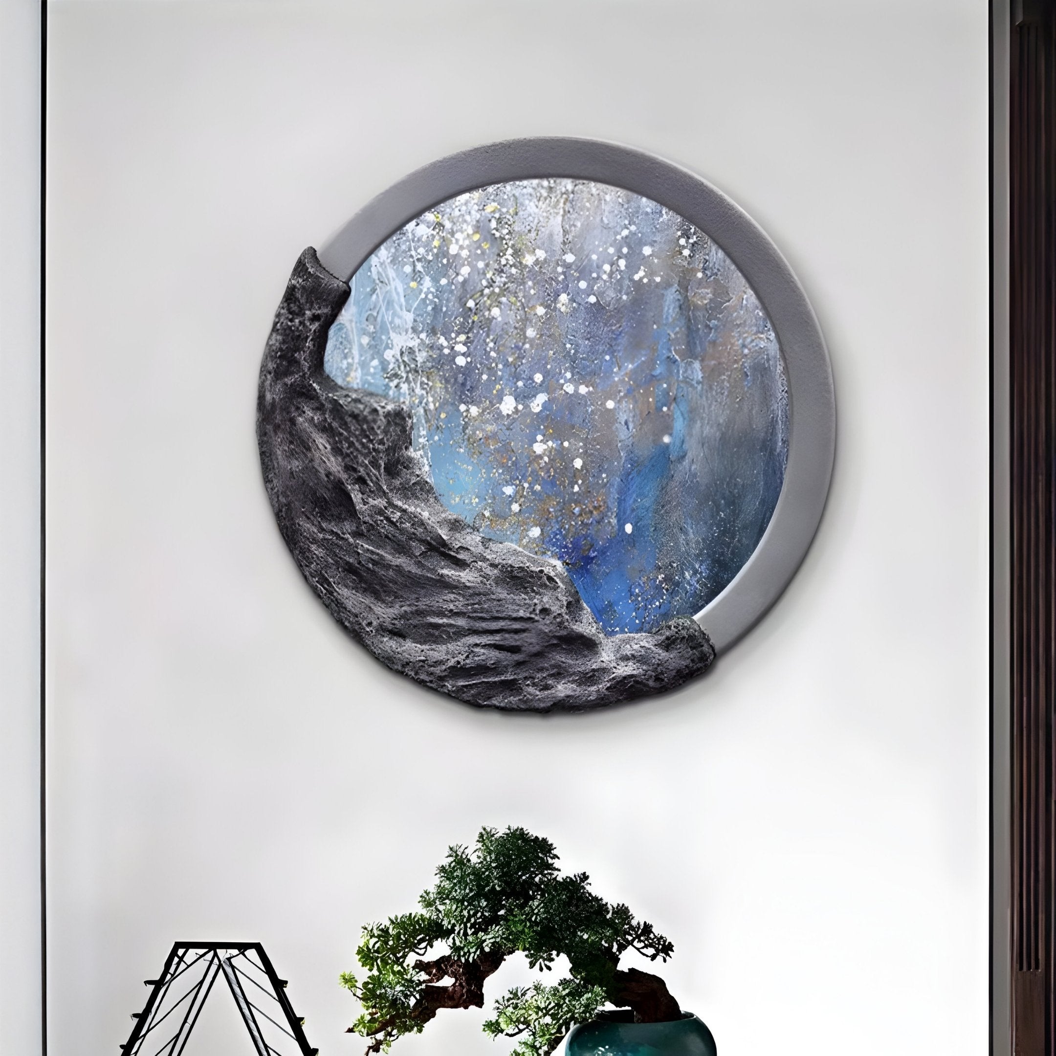 Constructed to provide lasting visual impact, the wood relief retains its sharp definition, while the paint layers remain vibrant over time. The hand-applied speckles hint at starlight, injecting depth and allure into the design. A gently curving rocky edge juxtaposes with the round shape, emphasising the panel’s three-dimensional character. Placed on a neutral wall, the contrasts between velvety blues and speckled highlights become even more pronounced, while in a more eclectic setting, it helps tie together diverse decorative elements. With its refined craftsmanship and soothing palette, the Auroria Velvet Dusk Hand-Painted Wood Relief 3D Wall Art captures attention without overwhelming the room. Whether as a standalone statement piece or part of a larger gallery-style arrangement, it exudes an air of calm sophistication that adapts well to both modern and transitional styles.
