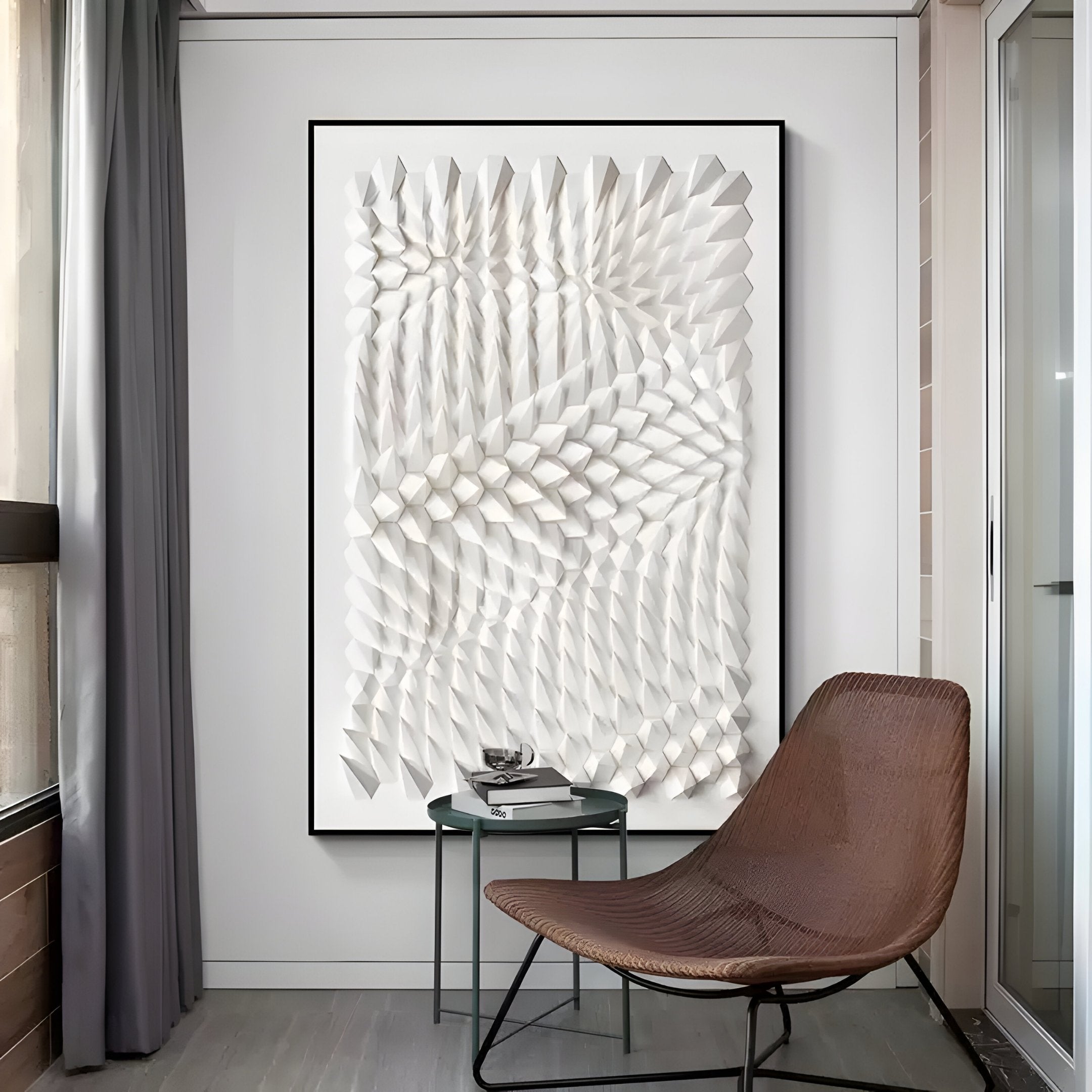 Sculpted from genuine wood and meticulously hand-finished in white, the Elorium White Concentric Hand-Painted Wood Relief 3D Wall Art adds a refined yet captivating element to any interior. At first glance, the surface appears to be composed of interlocking leaf- or petal-like forms, arranged in a series of concentric patterns. This layered arrangement creates a sense of movement that seems to radiate outward, reminiscent of ripples across still water. The subtle sandstone-like texture, achieved through precise carving and painting techniques, imbues the piece with a soft, organic touch. As light sweeps over each ridge and valley, shifting shadows and highlights cast a dynamic effect that changes throughout the day.