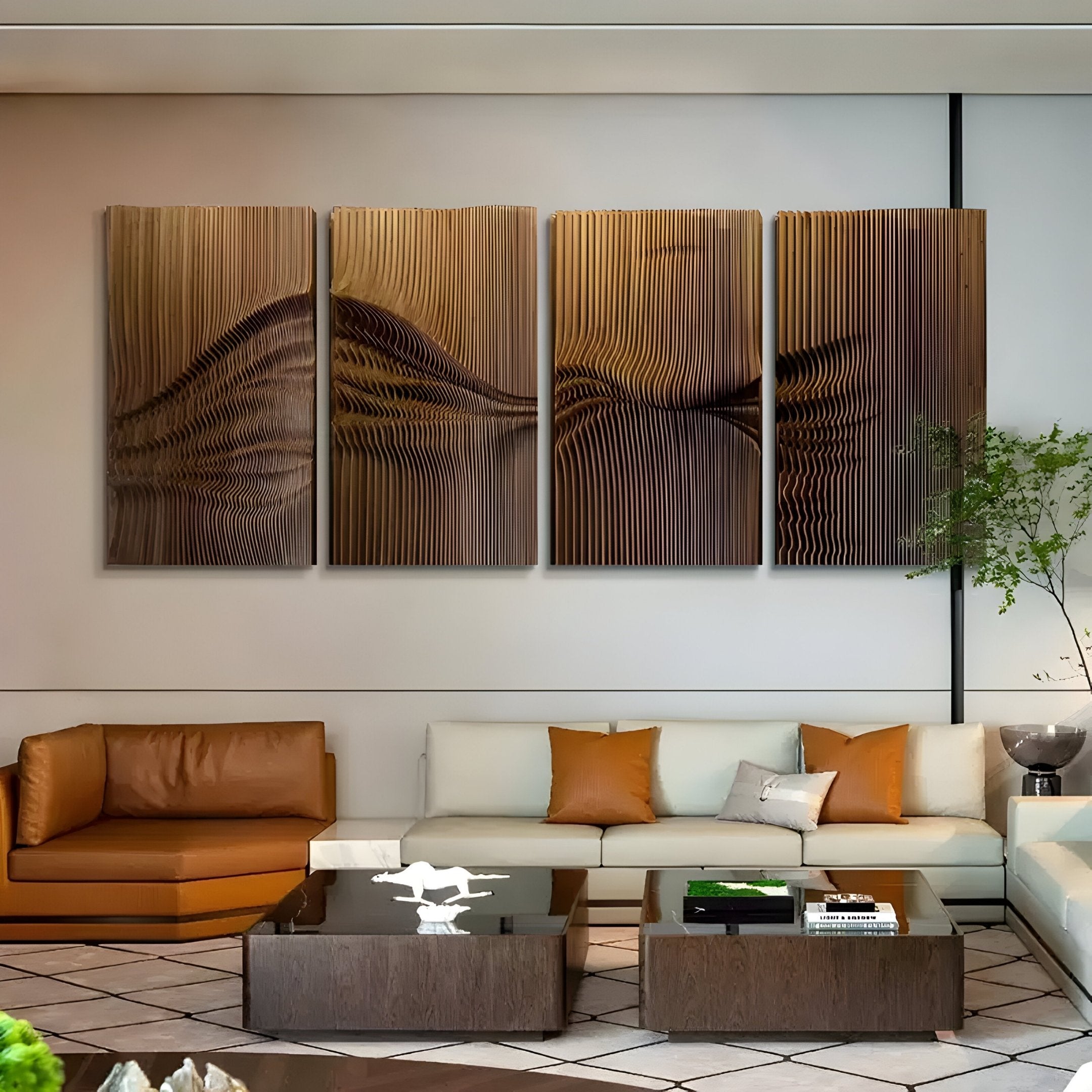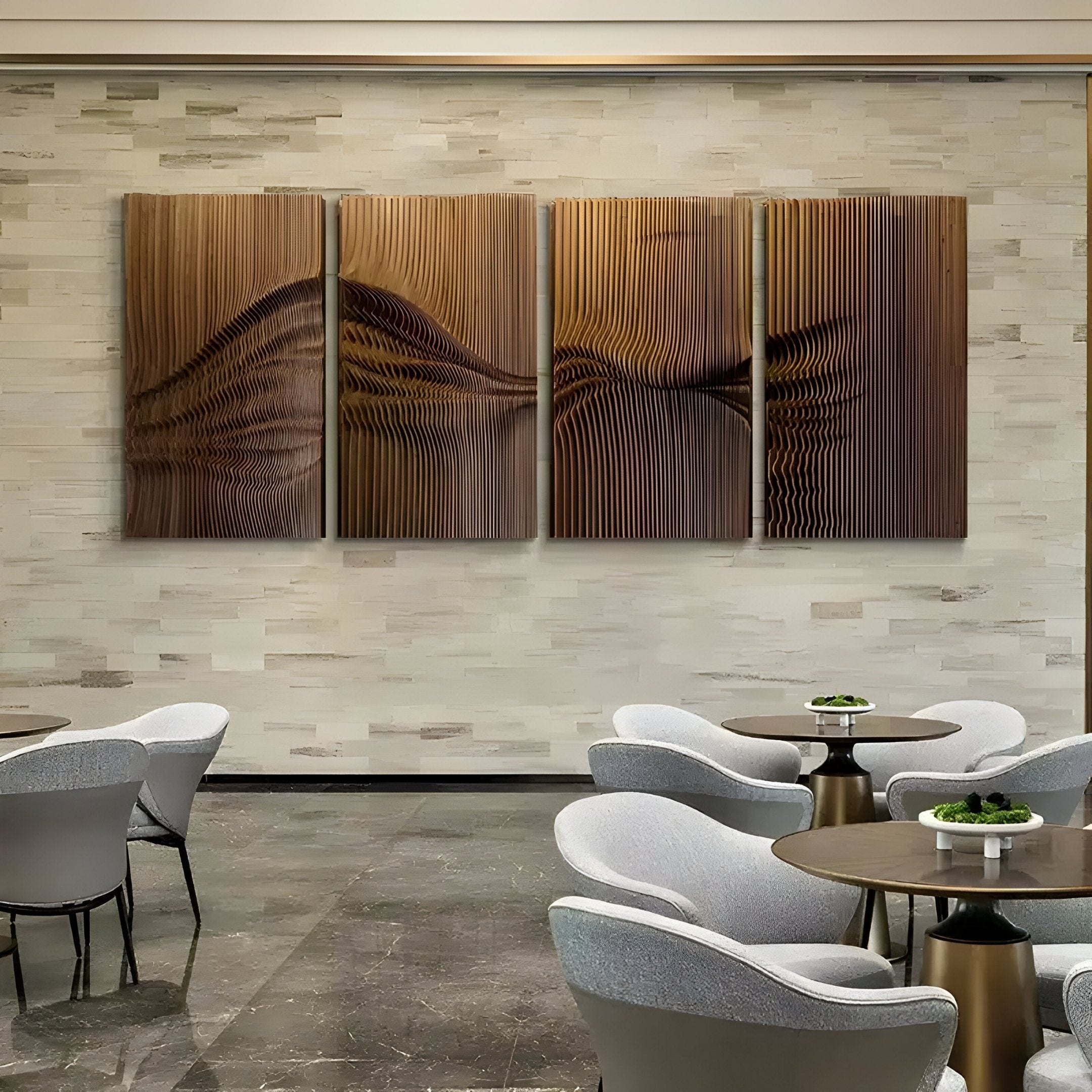 Transform Interiors with a 4-Panel Wooden Relief Masterpiece