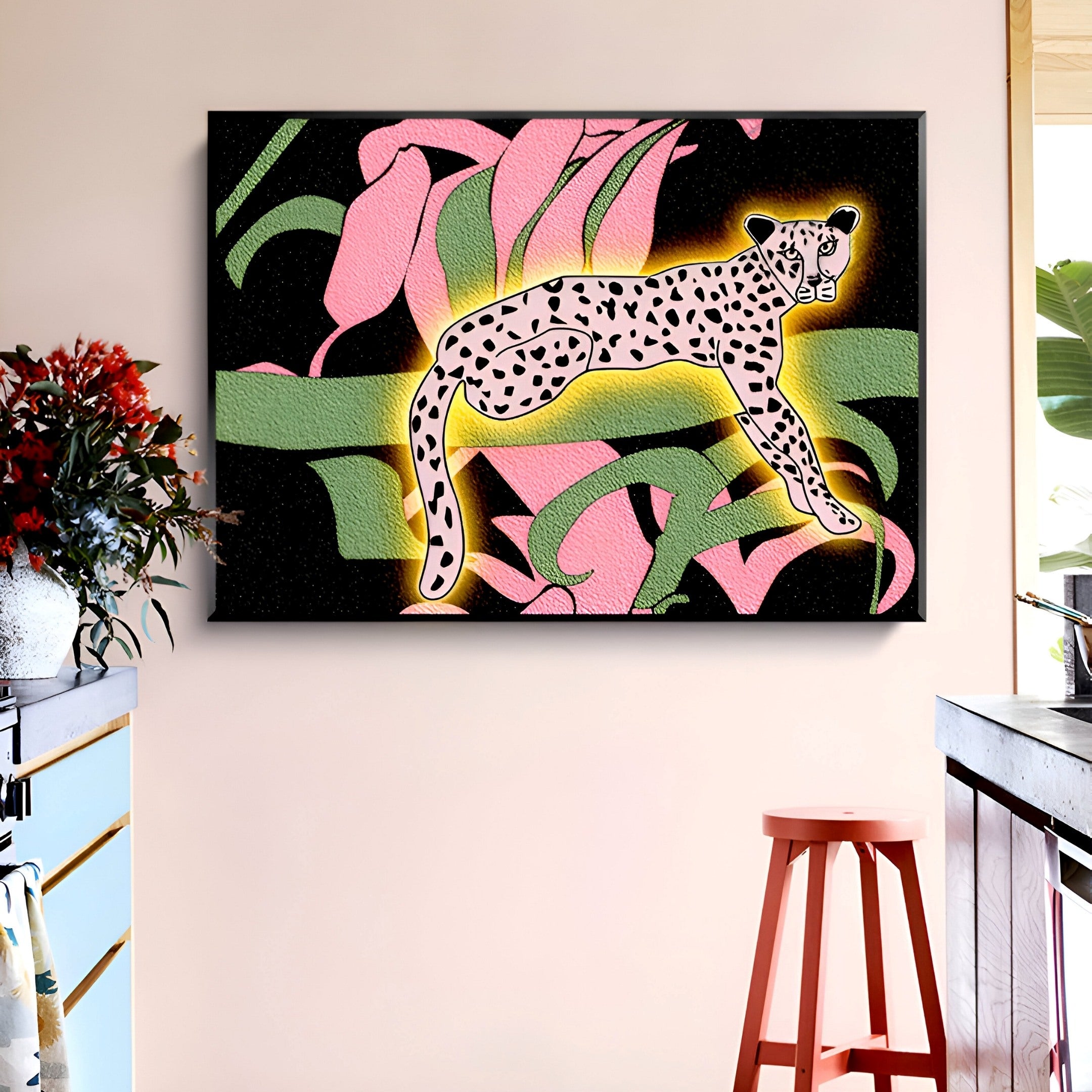 Juniper II Botanical Escape Sandstone Wood Carving 3D LED Wall Art combines the raw beauty of natural materials with meticulous craftsmanship. This piece features an intricate blend of sandstone and wood, showcasing a vibrant display of botanical carvings enhanced by the dynamic addition of a cheetah motif. The detailed carvings create a three-dimensional structure that brings the artwork to life, making it more than just a decorative piece-it’s an immersive experience. Integrated LED lighting highlights every carved detail, creating a glowing backdrop that enhances the bold colors and organic textures of the design. Ideal for modern and eclectic spaces, Juniper II blends nature-inspired aesthetics with contemporary functionality.