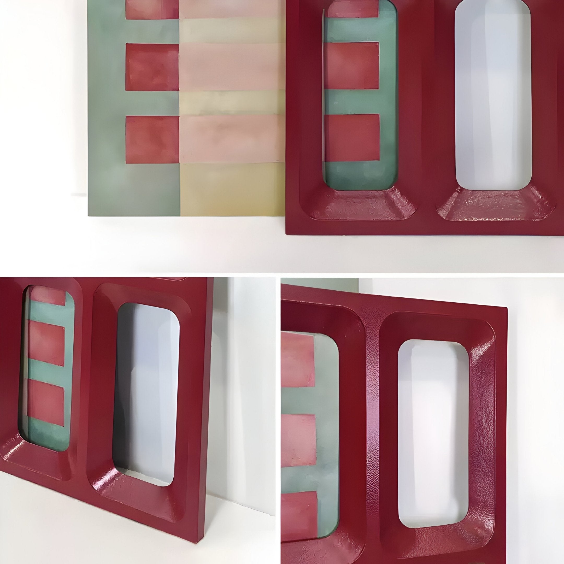 Merging a soft, layered oil backdrop with a bold, glossy red relief panel, the Lineris Red Oil Painting & Glossy Wood Relief 3D Wall Art offers a striking centrepiece for sophisticated interiors. The oil-painted canvas features gentle brushstrokes in a subdued red palette, creating a sense of subtle gradient and warmth. In contrast, a shiny red rectangular panel in the foreground adds dimension and sleekness, catching ambient light to reveal nuanced reflections. Suited to entrance halls, living rooms, or upscale office environments, the piece underscores its modern design through a careful interplay of colour, finish, and form.