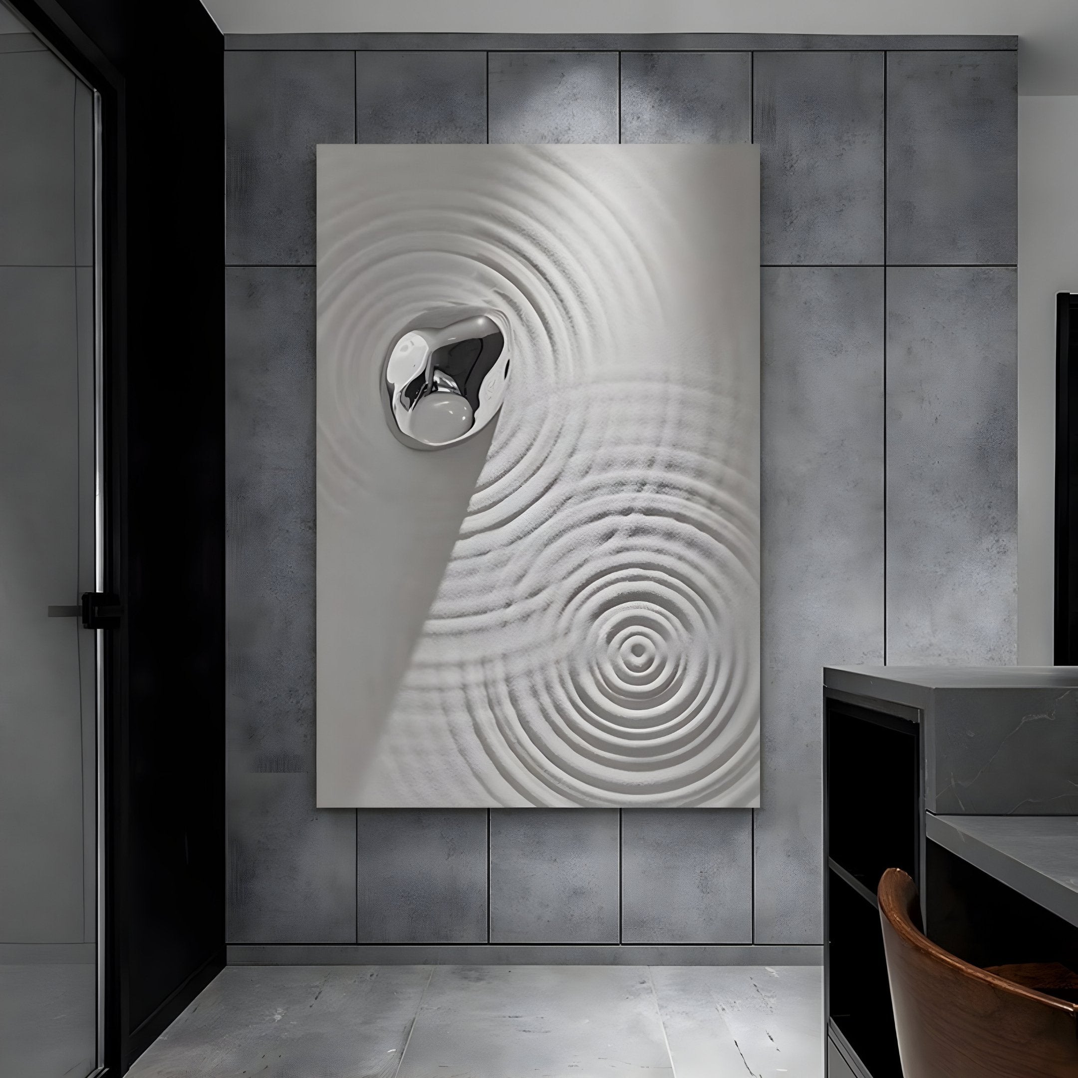 Rippling contours and a lustrous metallic accent unite in the Ondella Silver Ripple I Sandstone Wood Relief 3D Wall Art. A gently carved wooden surface hosts concentric circles reminiscent of water ripples, each outlined in a soft silver finish that highlights the piece’s depth. At one corner, a polished, pebble-like form introduces a mirror-like contrast against the more subdued, sandstone-inspired texture. Whether featured in an entrance hall or a minimalist living room, the mural brings a quiet but captivating presence, echoing the calm repetition of raindrops on a still pond.
