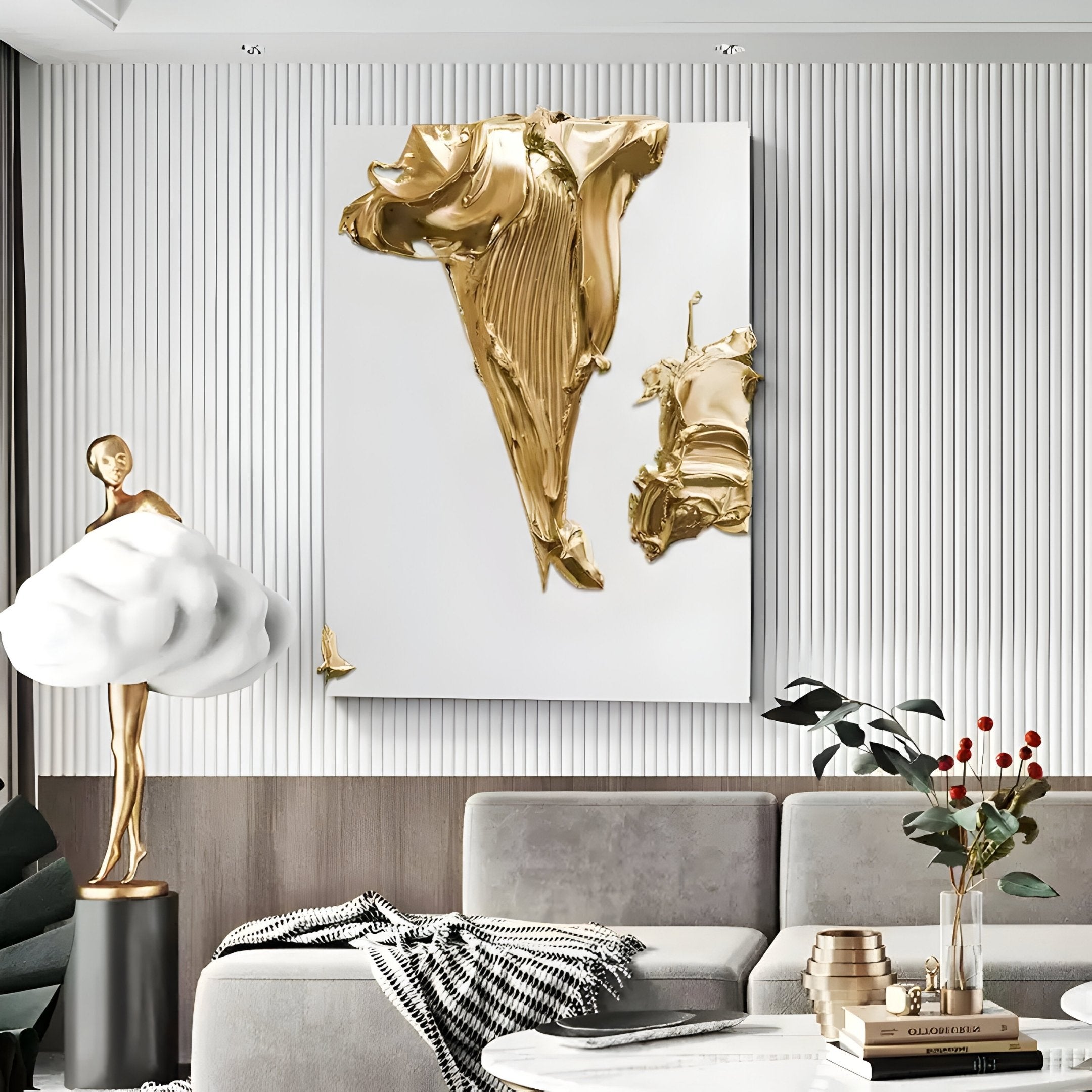 Sculptural White & Gold Wall Art for Corridor or Focal Display