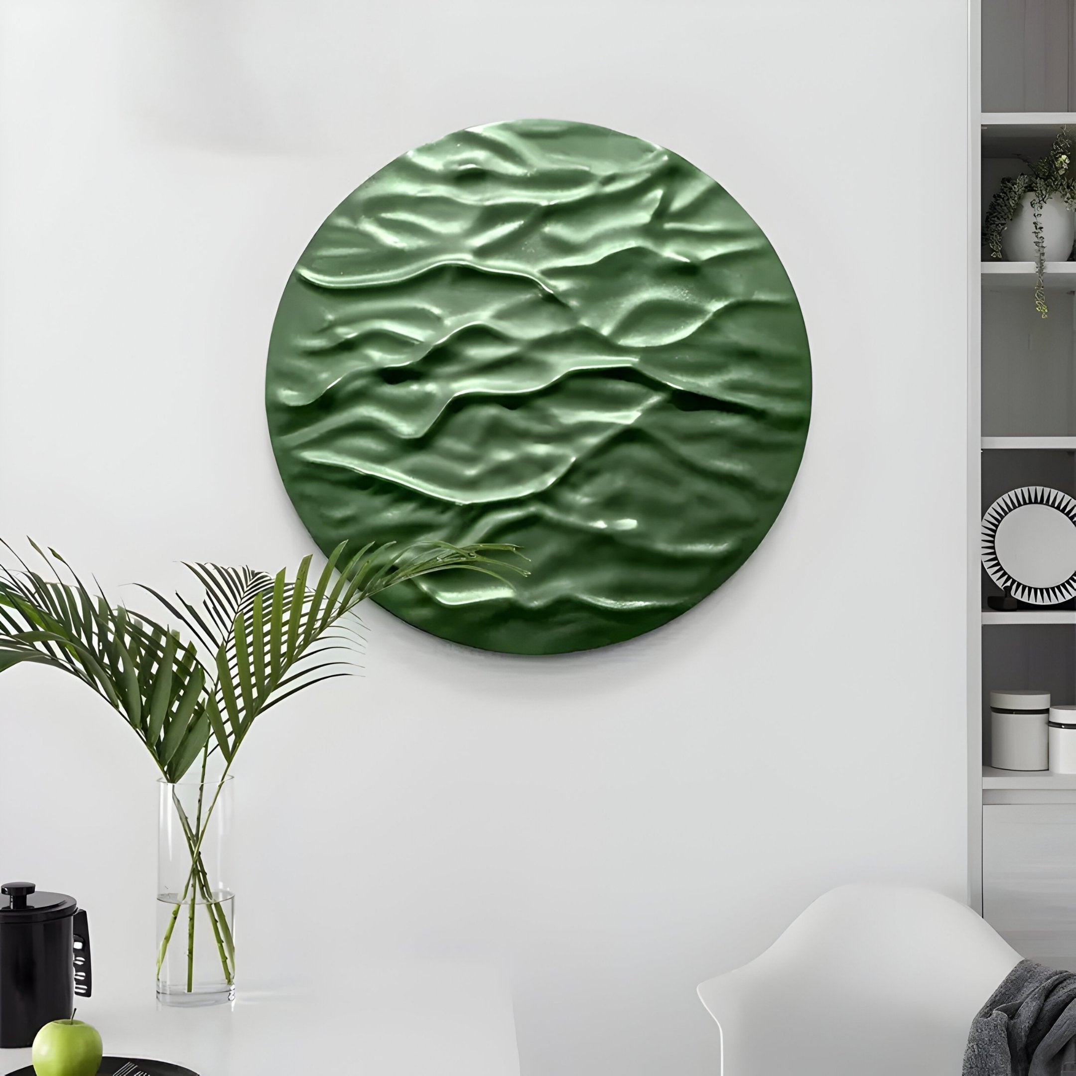 Carved from solid wood and finished in a calming green hue, the Orenda Ripple Wave Green Wood Relief 3D Wall Art introduces a naturalistic yet contemporary accent to any interior. Its circular form is softly sculpted with wave-like ridges that evoke a sense of flowing water or wind-swept landscapes. Inspired by minimalist and Japanese design influences, the piece blends effortlessly into both modern and eclectic décor, bringing a gentle touch of vibrancy to living rooms, porches, or other communal spaces. Beyond its aesthetic appeal, the green palette offers a soothing quality, ideal for those looking to infuse their home with a grounding, nature-inspired element.