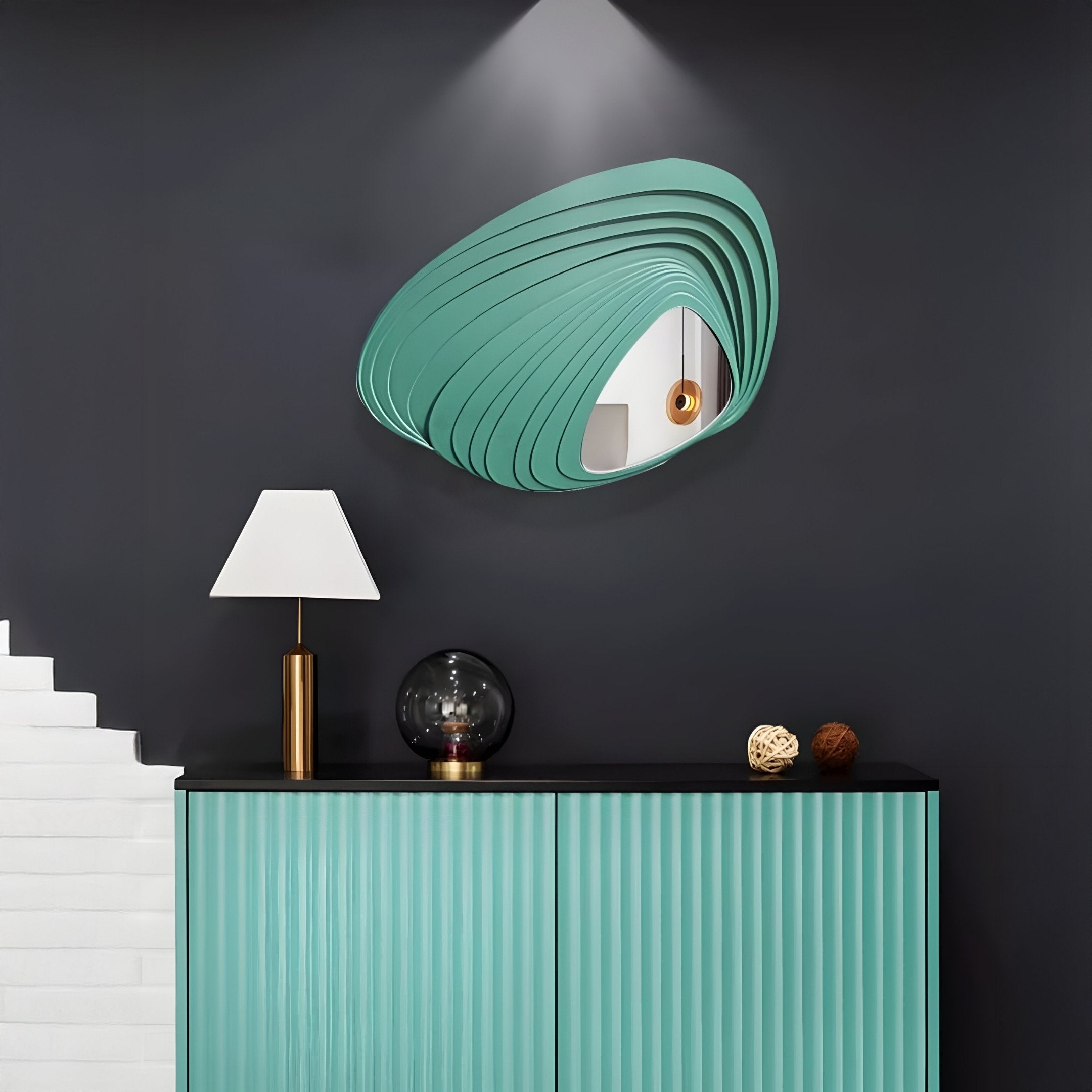 The Reflecta Green Wood Carving Mirror 3D Wall Art enlivens interiors with its sculptural form and refreshing colour. Each curved layer of wood is meticulously carved, creating an entrancing sense of depth that draws the eye. Finished in a soft, mid-tone green, this piece adds a soothing yet vibrant presence to rooms of all sizes. At its core lies a mirrored surface that not only serves a functional purpose, helping you check your reflection or bounce light around the space, but also forms a pleasing visual contrast against the layered frame. Observing the arcs from various angles reveals subtle variations in shadow, accentuating the craftsmanship and giving the design an almost fluid quality.