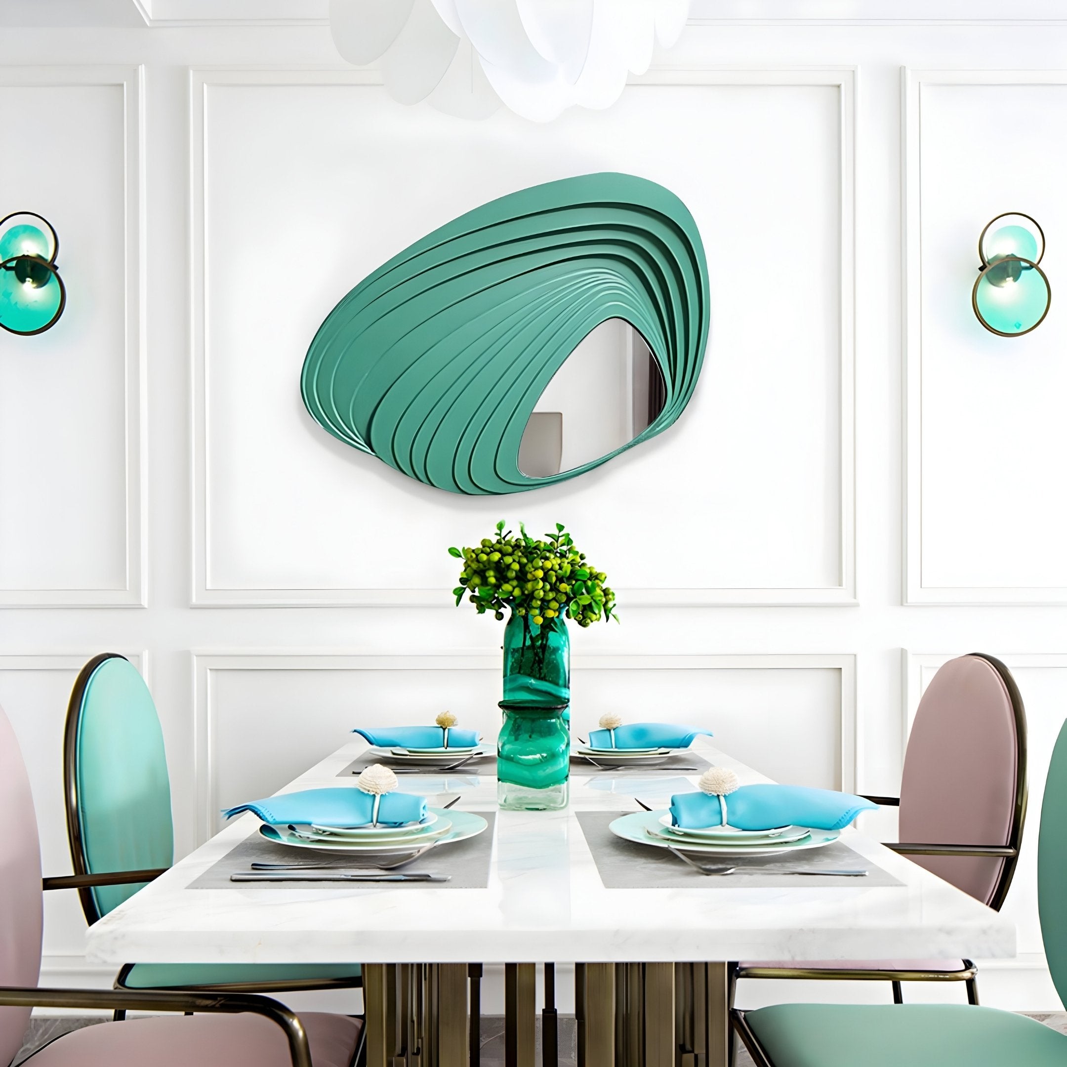 This statement piece works beautifully in living areas, entryways, or dressing spaces, effortlessly complementing both neutral and colourful settings. The layered form brings a dynamic silhouette to an otherwise flat wall, introducing an artful blend of practicality and style. Subtle enough to harmonise with existing furnishings, yet distinctive enough to stand out, it serves as a conversation starter that merges form and function. The green hue conveys a sense of calm and connection to nature, making it an appealing choice for enhancing relaxation spots. By combining layered wood carving with a reflective centre, the Reflecta Green Wood Carving Mirror 3D Wall Art exemplifies how thoughtful design can transform a simple mirror into a visually compelling focal point for your home.