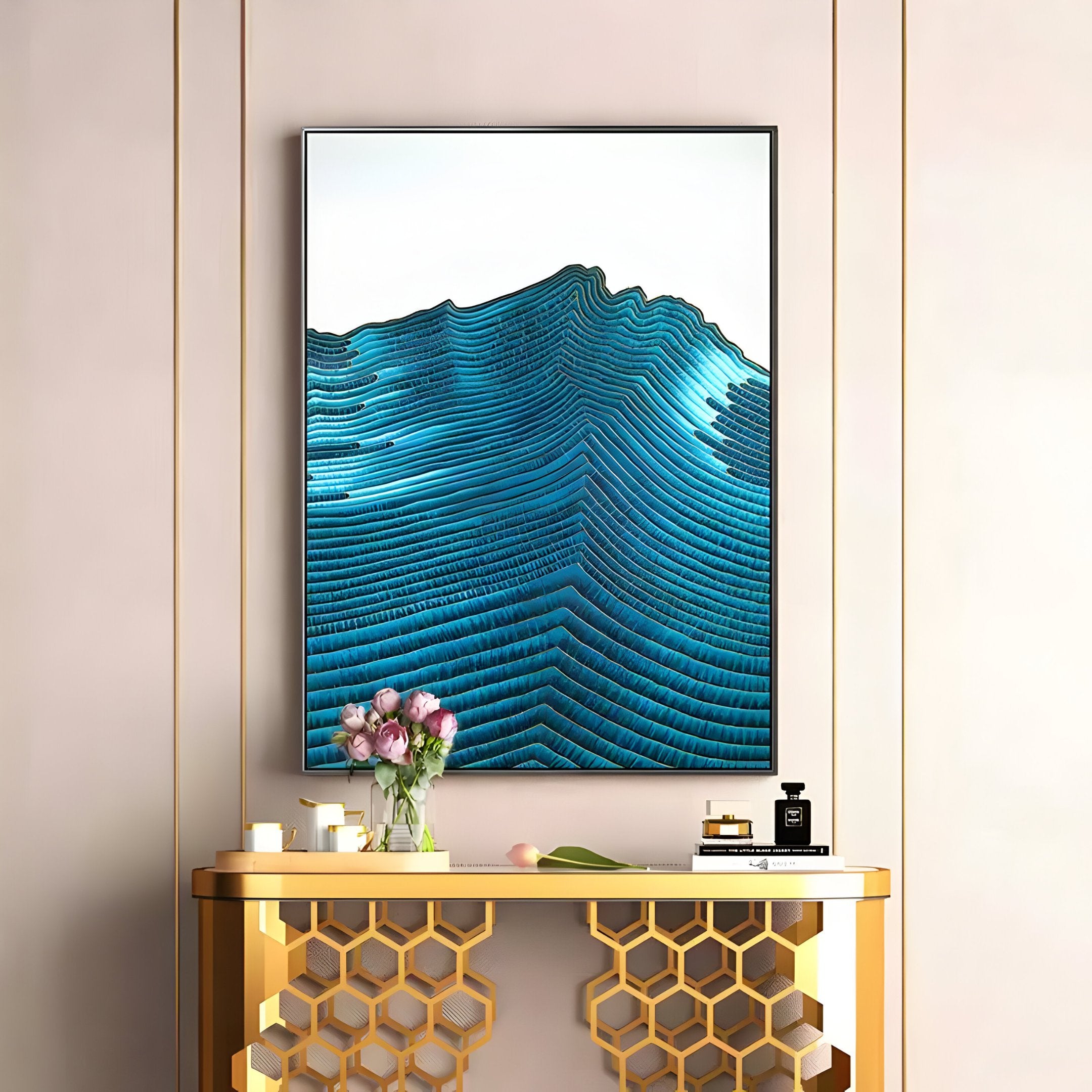 Ideal for living rooms, entryways, or upscale office spaces, this vertical artwork effortlessly enhances both modern and classic interiors. The vibrant blue tones pair beautifully with neutral and metallic accents, creating a harmonious focal point that draws the eye without overpowering the space. Designed to captivate with its rhythmic contours and rich colour palette, the Ripplewave III Abstract Blue Decorative Enamel Wall Art delivers a refined aesthetic that complements luxury, minimalist, or Zen-inspired interiors. Its handcrafted precision and timeless design make it a standout statement piece for both residential and commercial environments.
