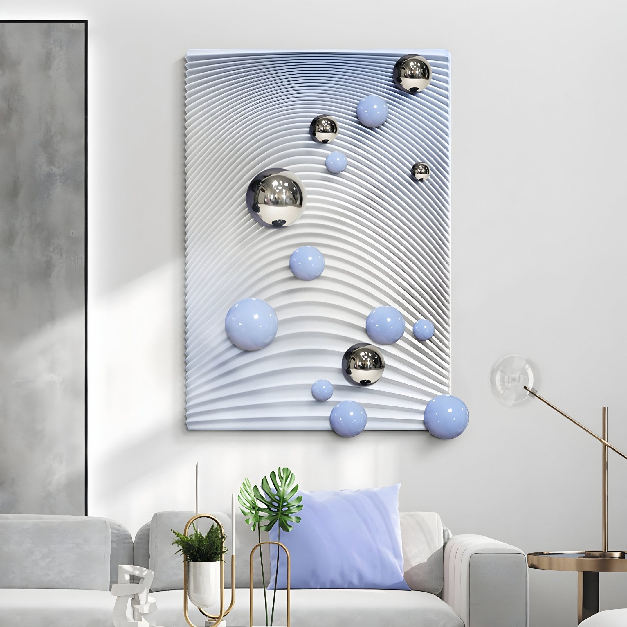 Ideal for living rooms, hallways, or offices, this artwork blends calm movement with a touch of contemporary flair. The wave-like relief provides a tranquil foundation, while the silver and blue orbs add a sense of playfulness and depth. Built with durable materials, the Sphera Gradient 3D Wood Relief Wall Art With Blue & Silver Metal Ball retains its defined lines and reflective surfaces through everyday use. By uniting flowing grooves with subtle colour transitions, the design suits a variety of interiors, from minimalist to more eclectic themes. Its measured palette integrates smoothly with existing décor, serving as either a subtle accent or a focal statement. Whether you seek to elevate a neutral scheme or complement a brighter setting, this artwork offers a balanced mix of calm and visual interest. Its layered construction and thoughtfully arranged spheres ensure it stands out, reflecting a creative approach to modern wall décor.