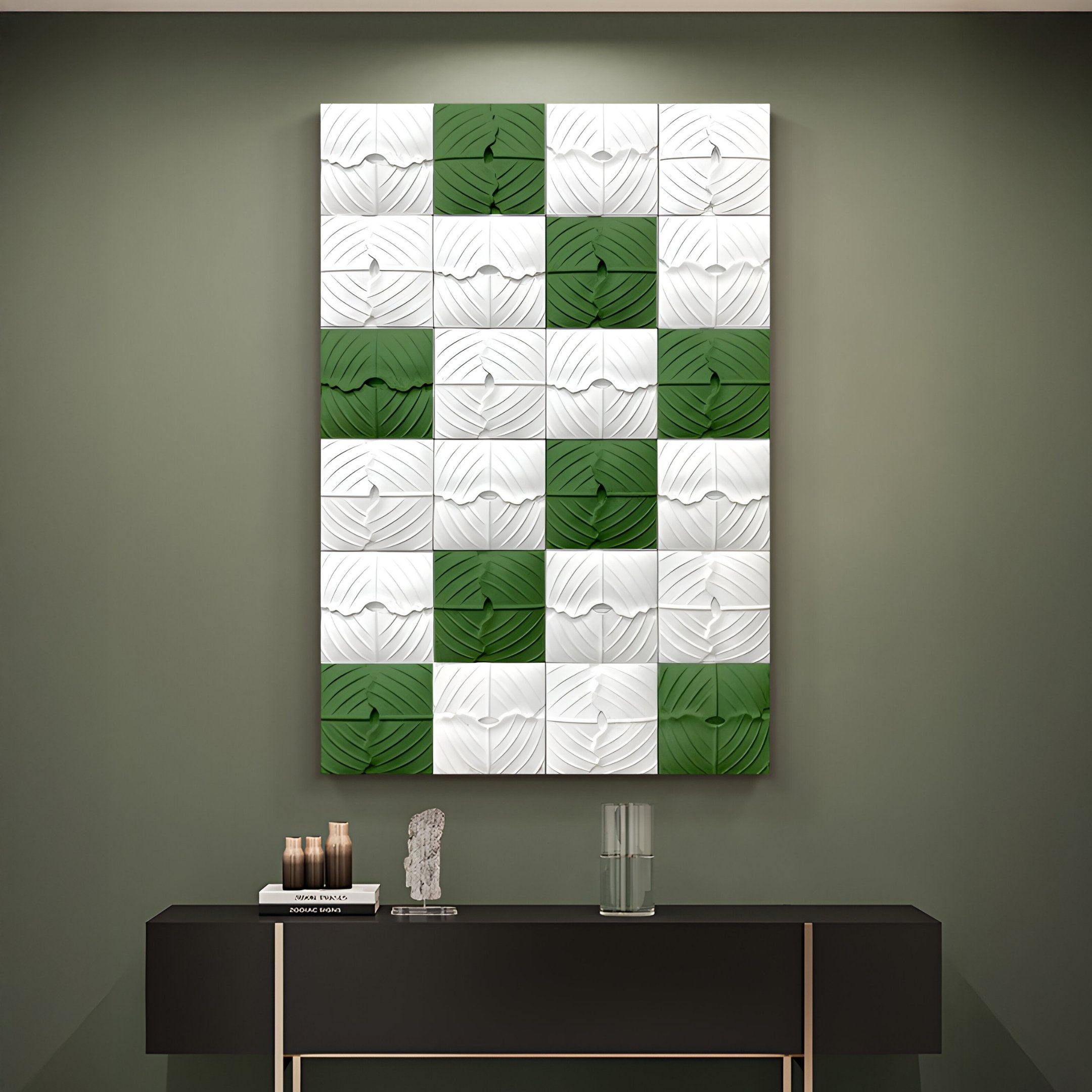 Sculptural Checkerboard Art With Organic Surface and Fresh Tonality