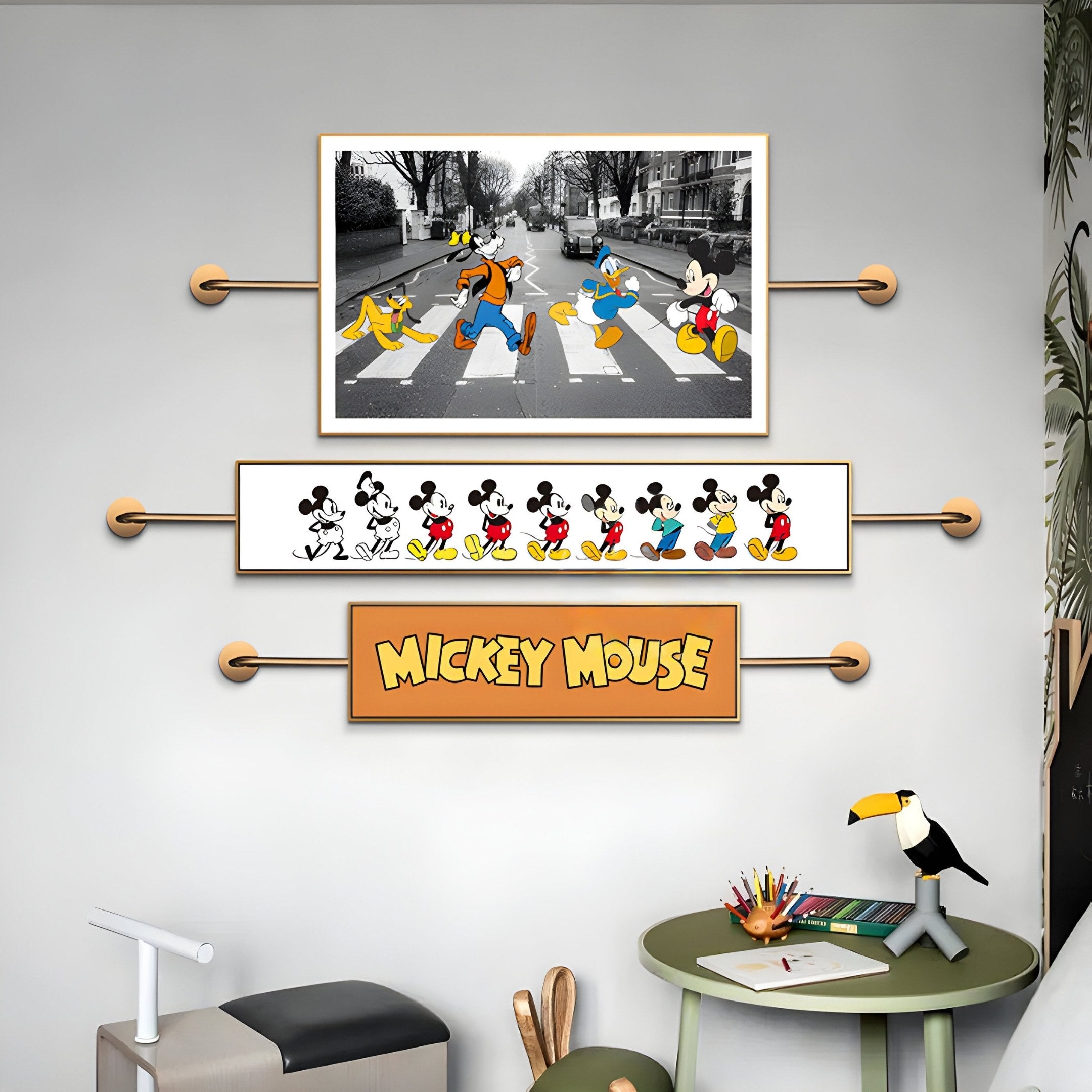 Designed for kids rooms, play spaces, or themed entertainment areas, this wall art seamlessly combines artistic appeal and childhood nostalgia. The metal rod hanging design adds a contemporary and minimalist feel, making it ideal for modern or eclectic interiors. Each frame is crafted with precision, ensuring durability while keeping the artwork lightweight for easy installation. The bright, cheerful colours effortlessly brighten up neutral walls and complement vibrant palettes, making it a versatile addition to both residential and commercial spaces. Hang this charming set above a desk, bed, or play area for an eye-catching focal point that sparks creativity and joy. Whether used as standalone pieces or as part of a themed gallery wall, the Visario Mickey Mouse Themed Metal Wall Art infuses personality and energy into your décor.