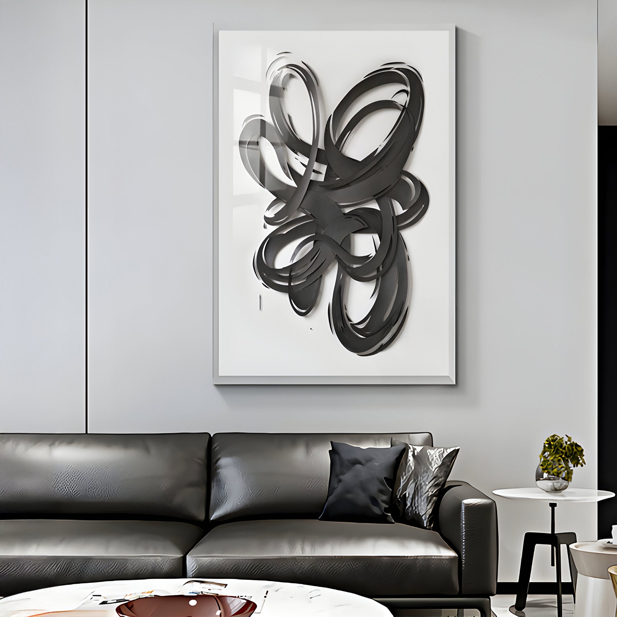 Perfect for living rooms, offices, hallways, or upscale commercial spaces, this wall art seamlessly complements modern and industrial interiors. The combination of bold black swirls and a crisp white base delivers a clean, refined look that blends with both neutral tones and contemporary colour schemes. Its sculptural form and high-quality materials reflect craftsmanship and attention to detail, making it a versatile choice for residential and professional settings. Positioned as a focal point above a sofa, console, or conference area, the Zephyr Black Cascade Abstract Metal Wall Art transforms blank walls into eye-catching displays of modern artistry.