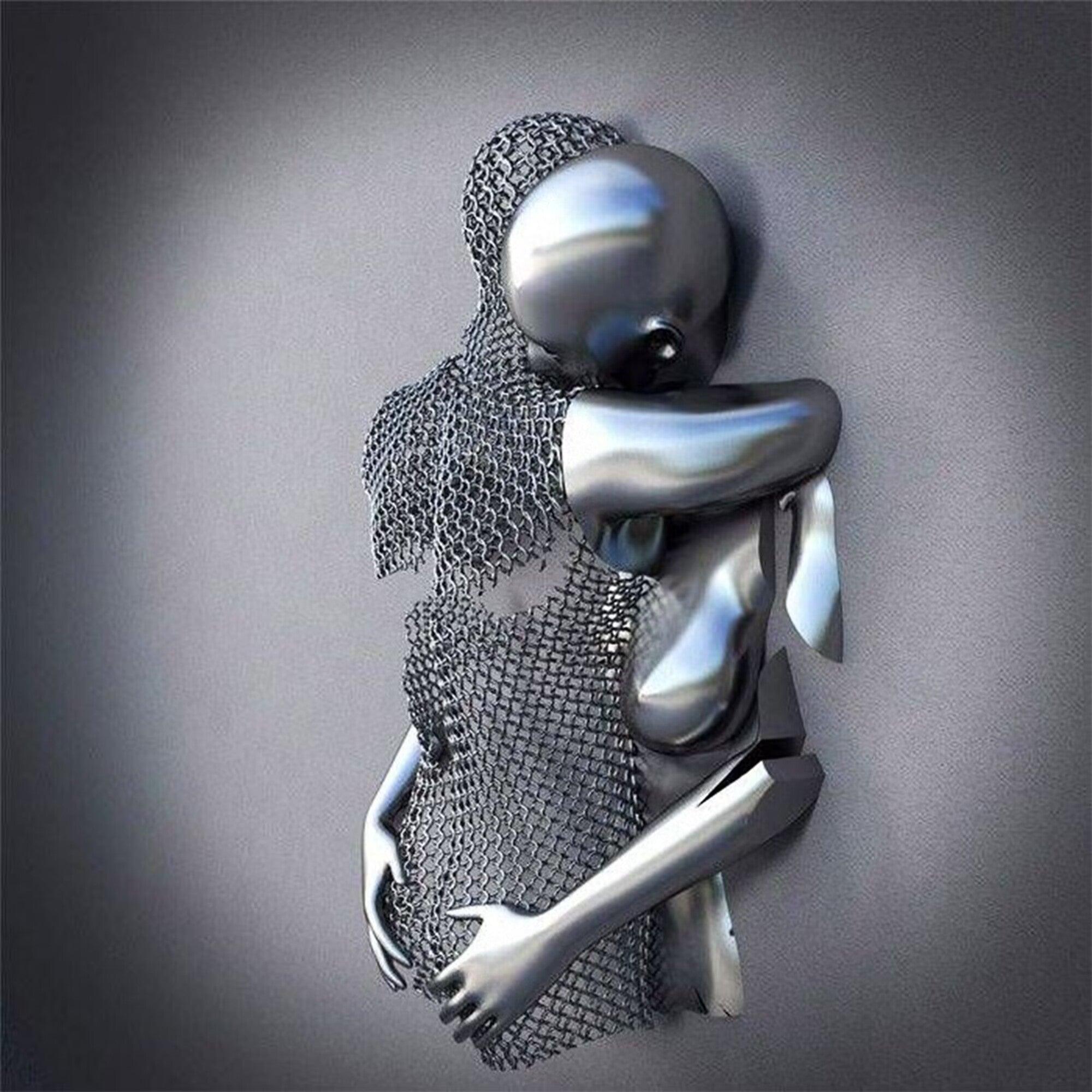 Love Heart Kissing Couples Hug 3 Pieces Wall Art Stainless Steel Sculptures FS-004