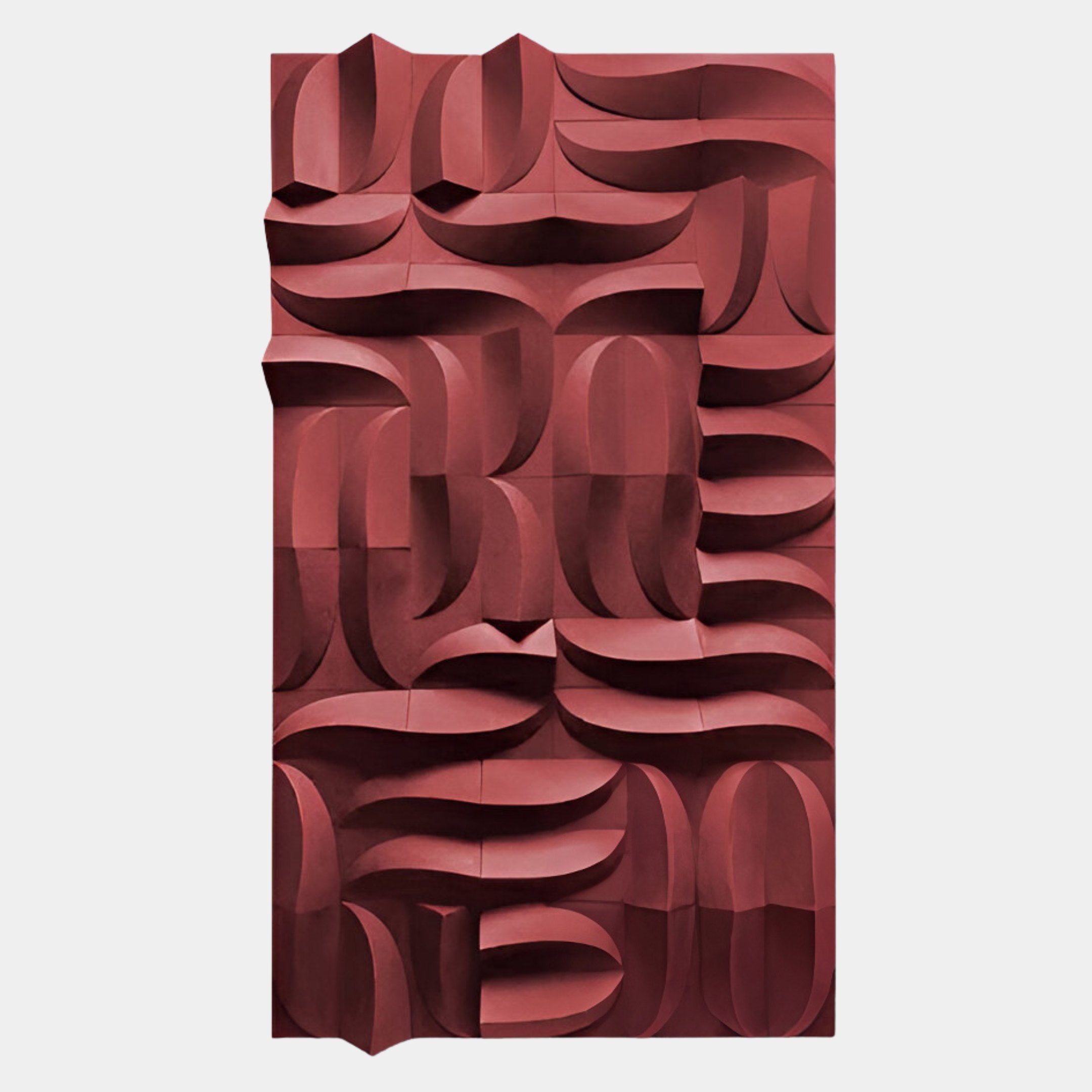 Ombra Burgundy Hand-Painted Sandstone 3D Wood Relief Wall Art