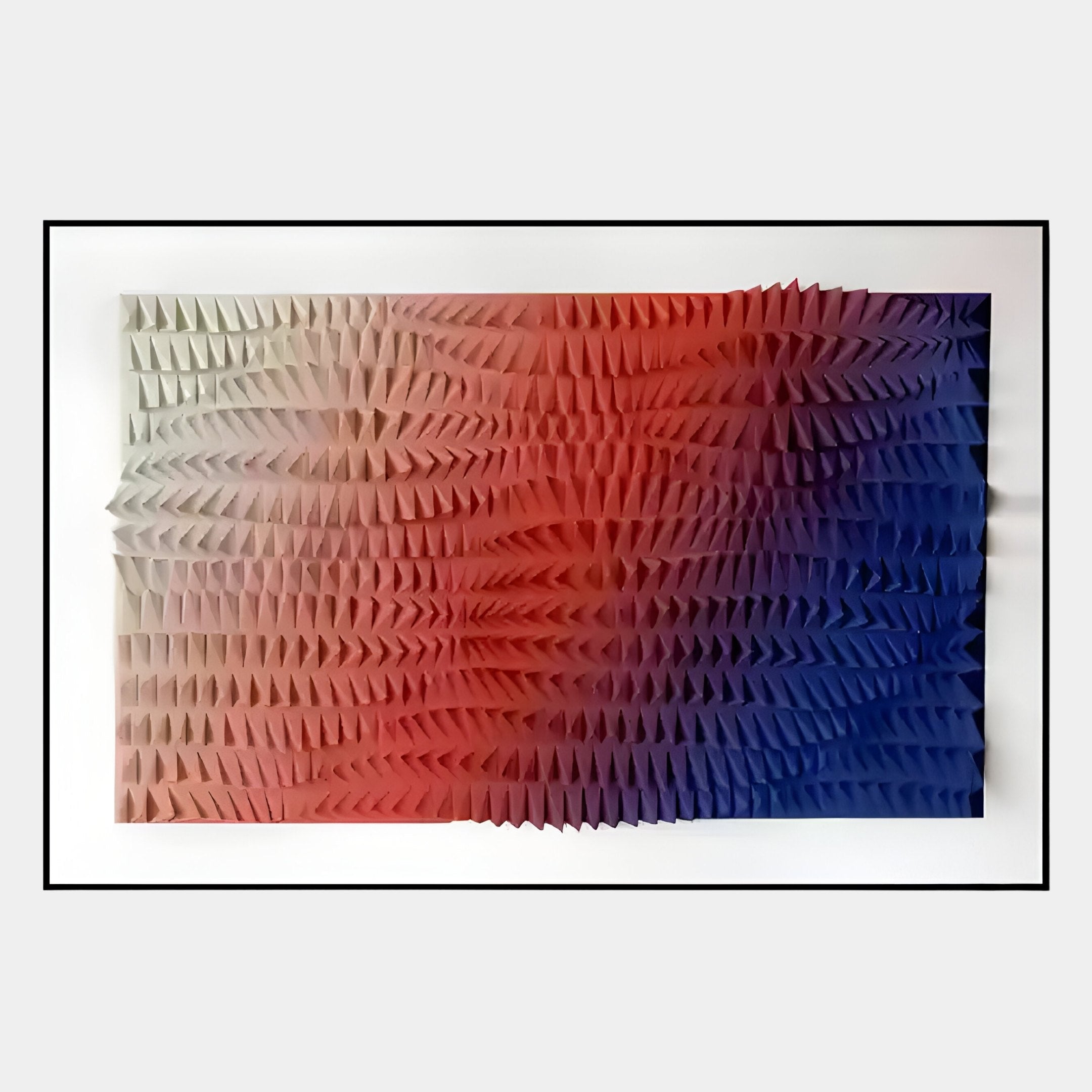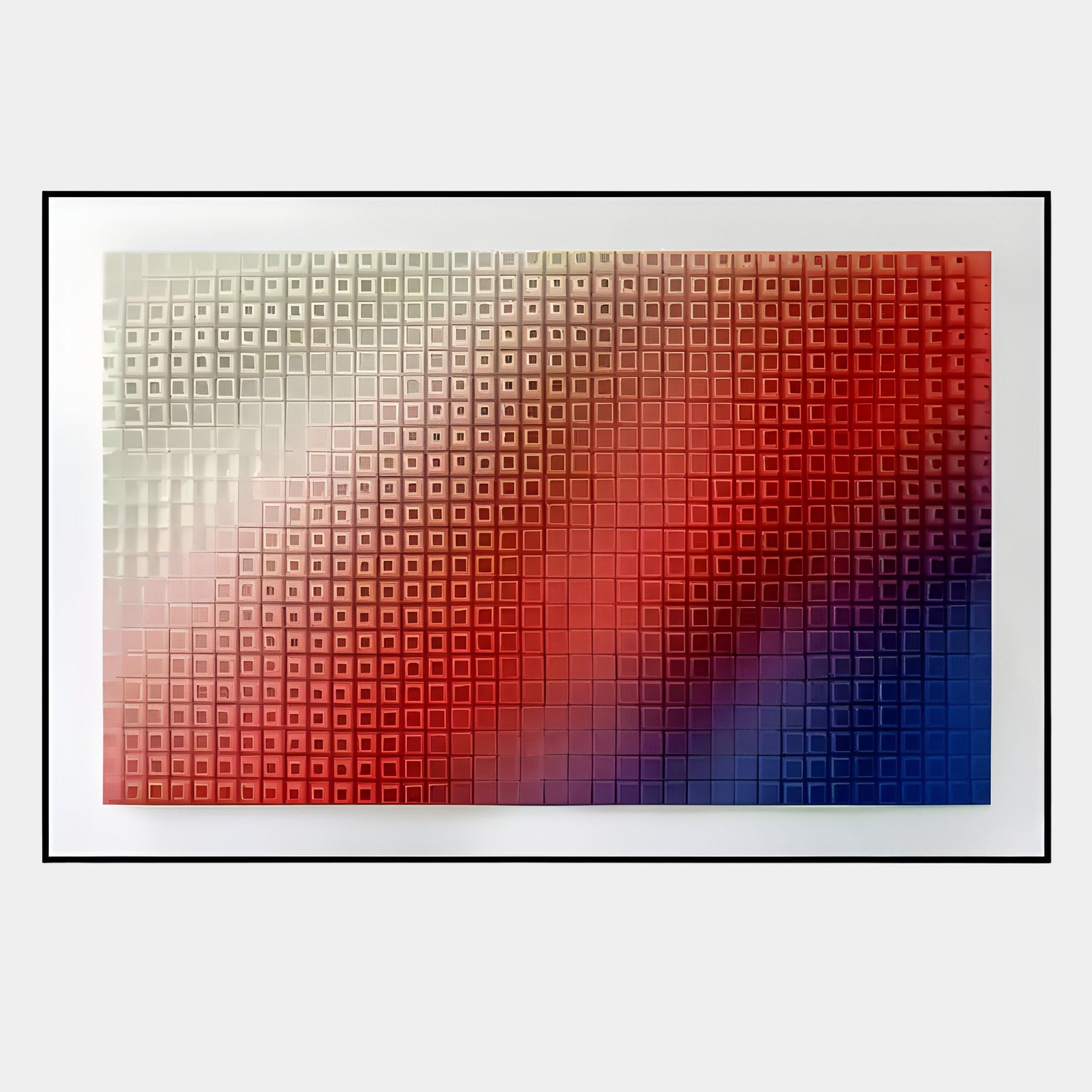 Elytrum Red & Blue Grid Gradient Hand-Painted Wood Relief 3D Wall Art
