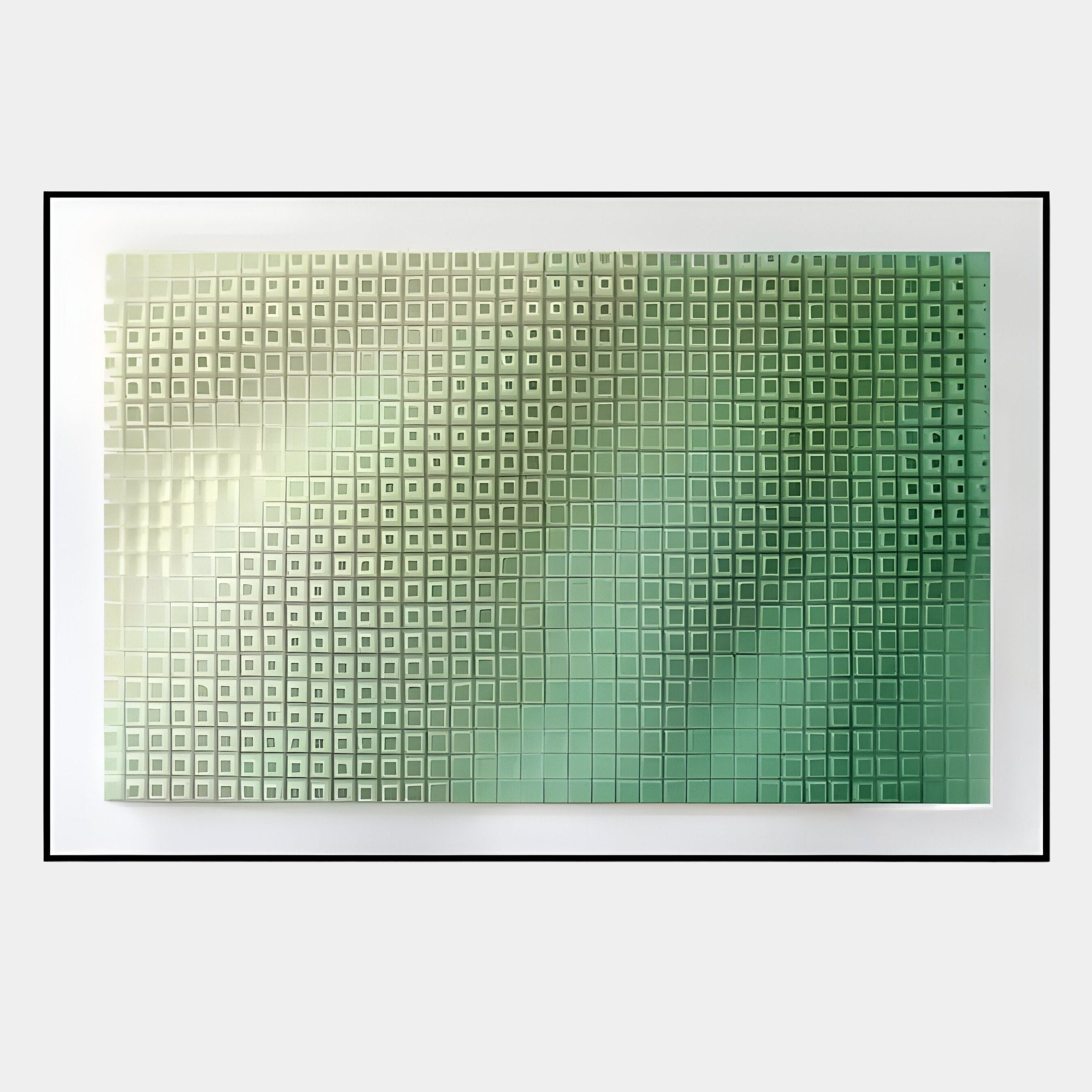 Elytrum Green Grid Gradient Hand-Painted Wood Relief 3D Wall Art
