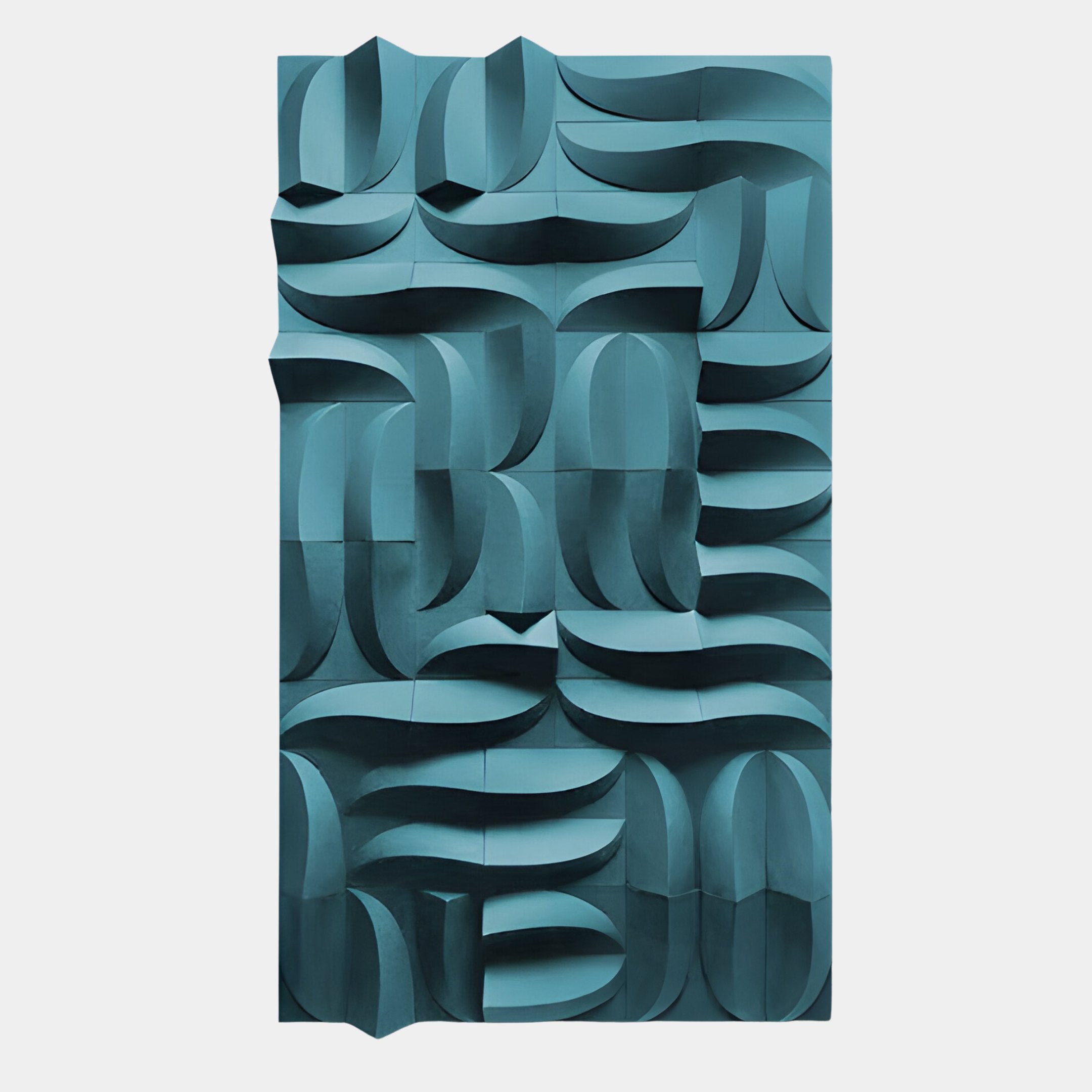 Ombra Teal Blue Hand-Painted Sandstone 3D Wood Relief Wall Art