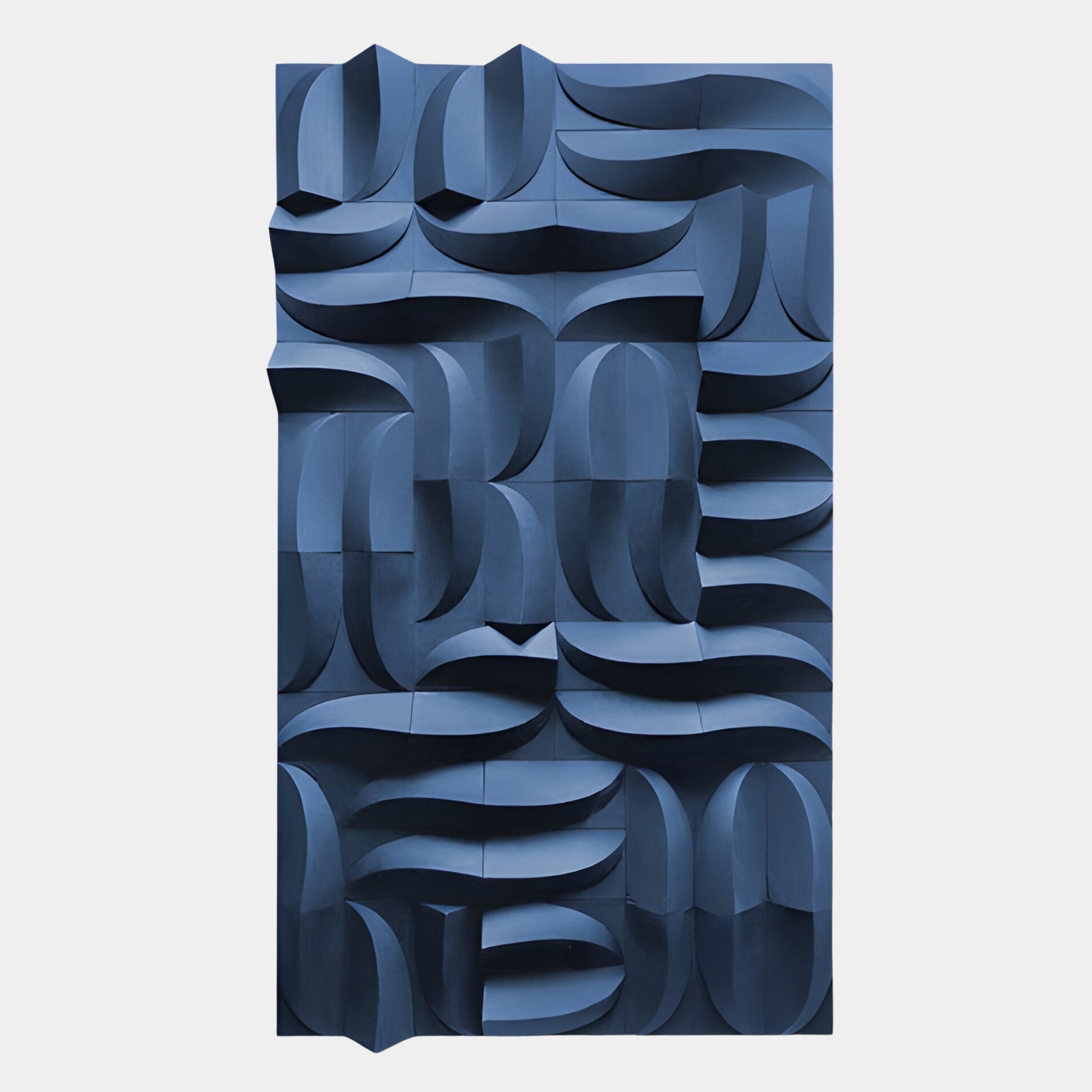 Ombra Blue Hand-Painted Sandstone 3D Wood Relief Wall Art