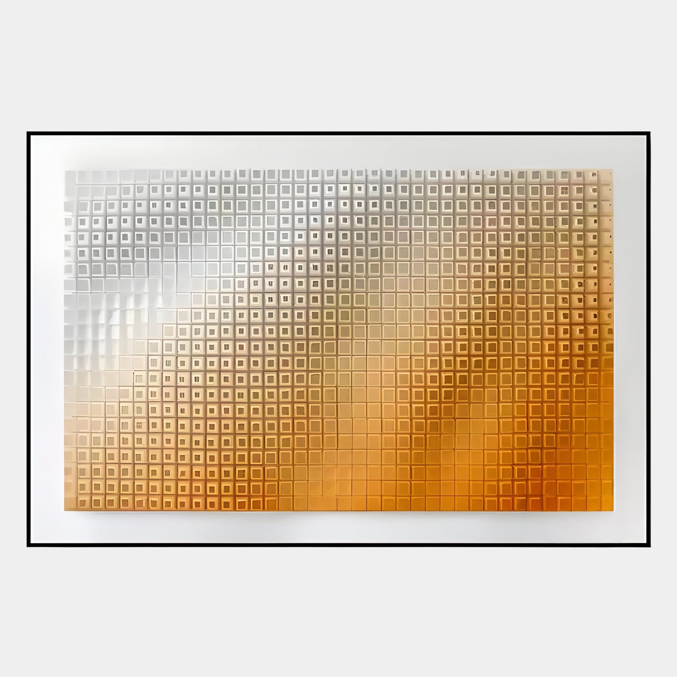 Elytrum Orange Grid Gradient Hand-Painted Wood Relief 3D Wall Art