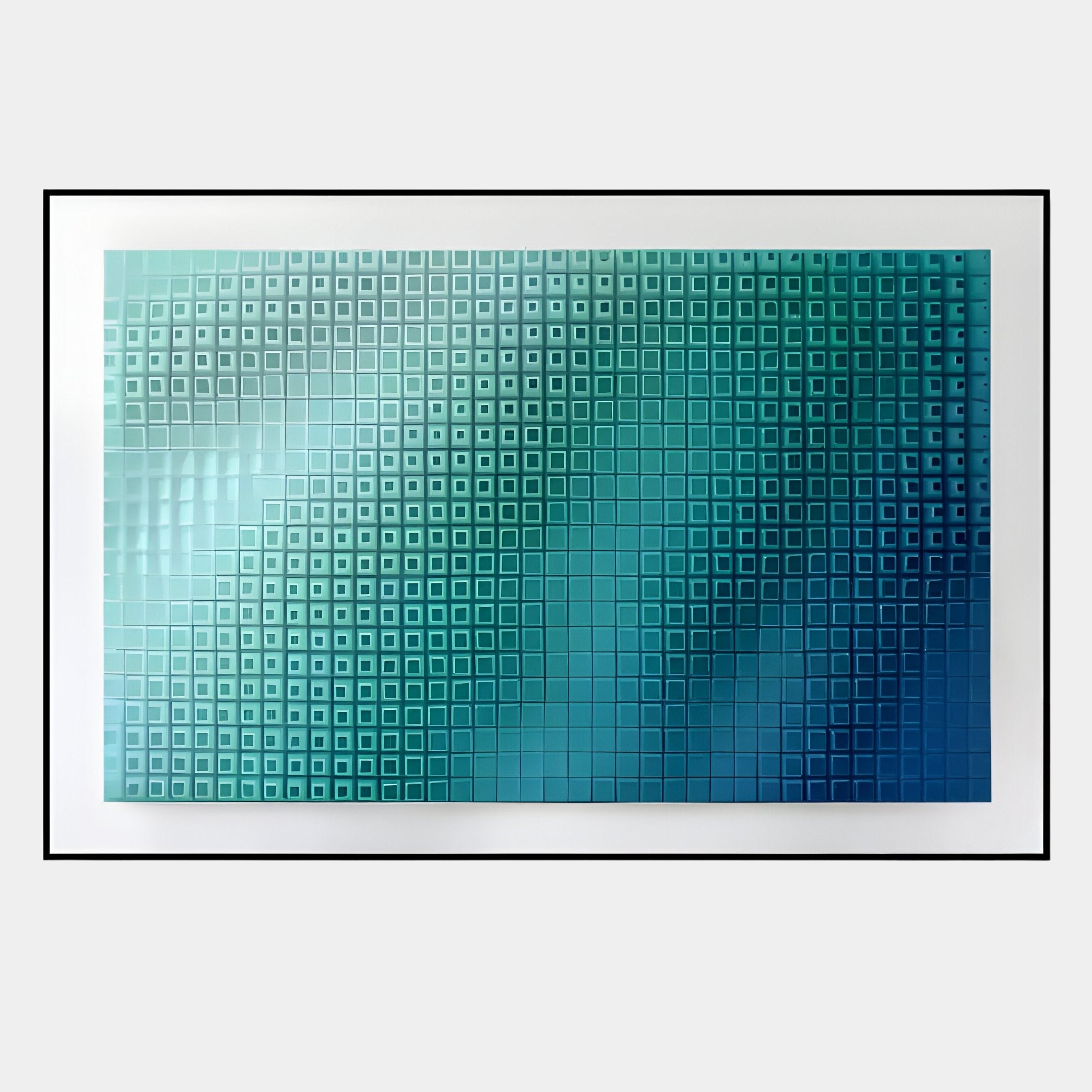 Elytrum Blue Grid Gradient Hand-Painted Wood Relief 3D Wall Art