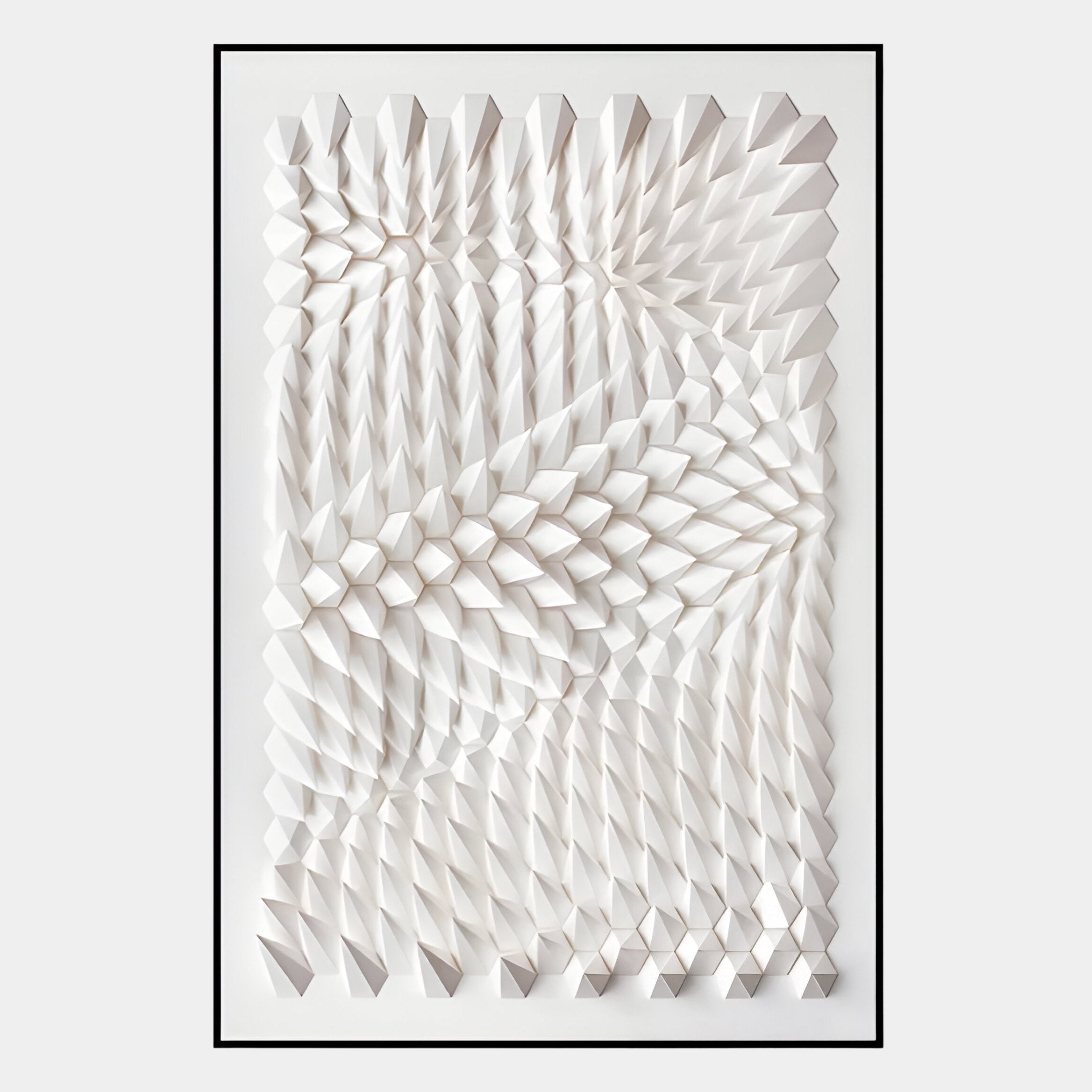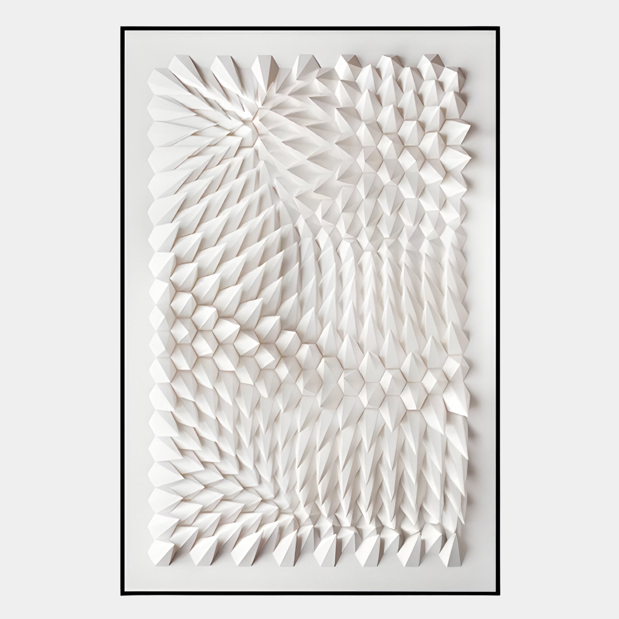 Elorium White Facet Hand-Painted Wood Relief 3D Wall Art