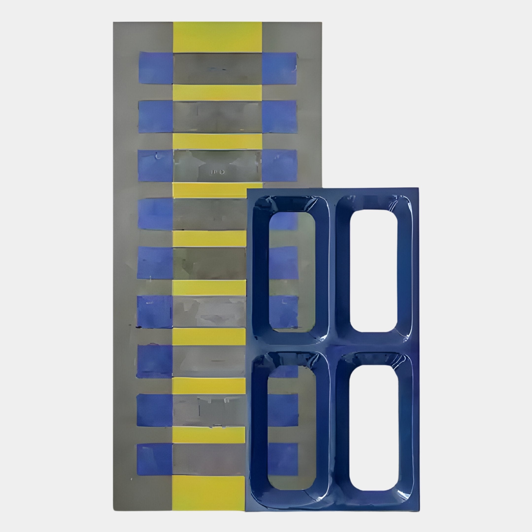 Lineris Blue Oil Painting & Glossy Wood Relief 3D Wall Art