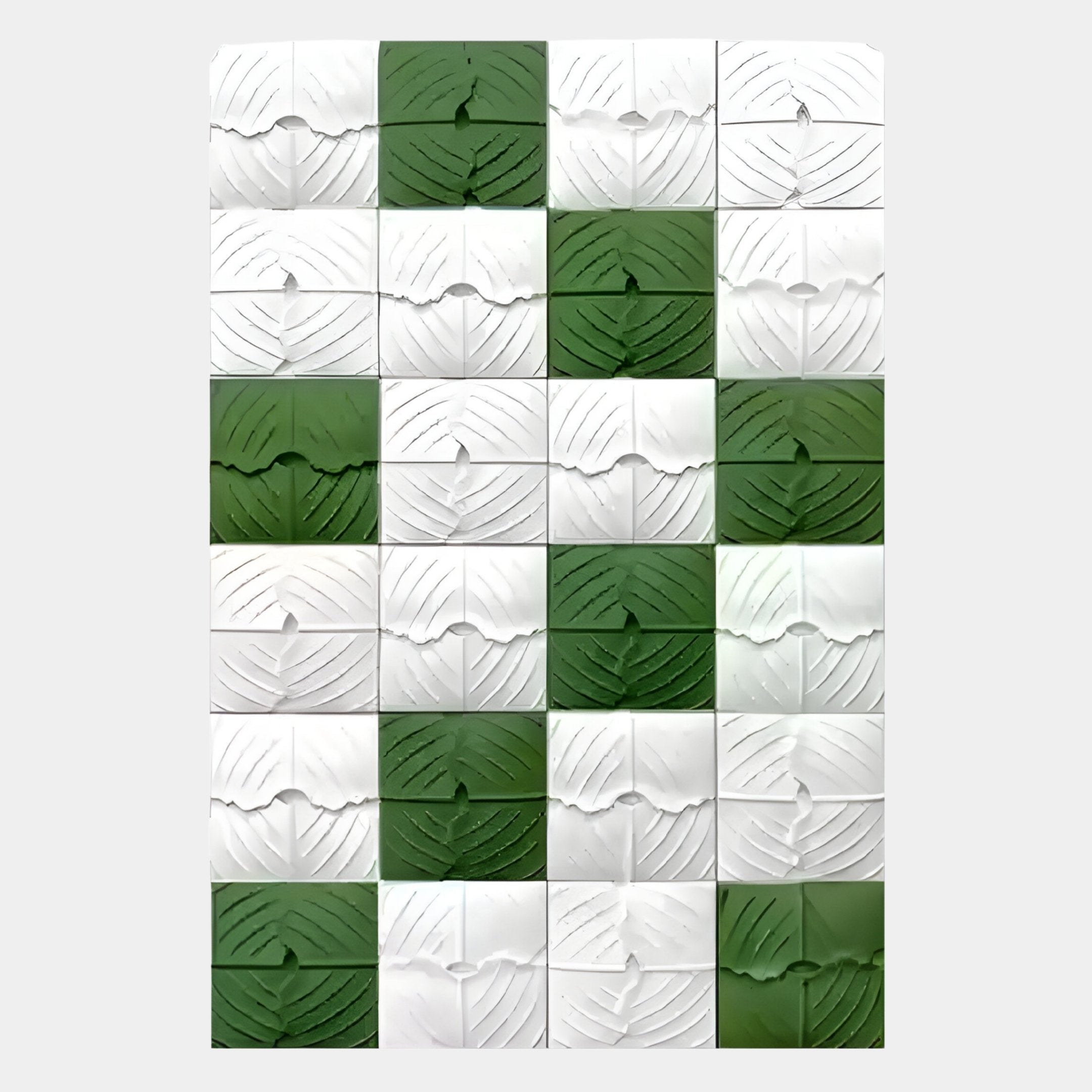 Vellura White & Green Textured Wood Relief 3D Wall Art