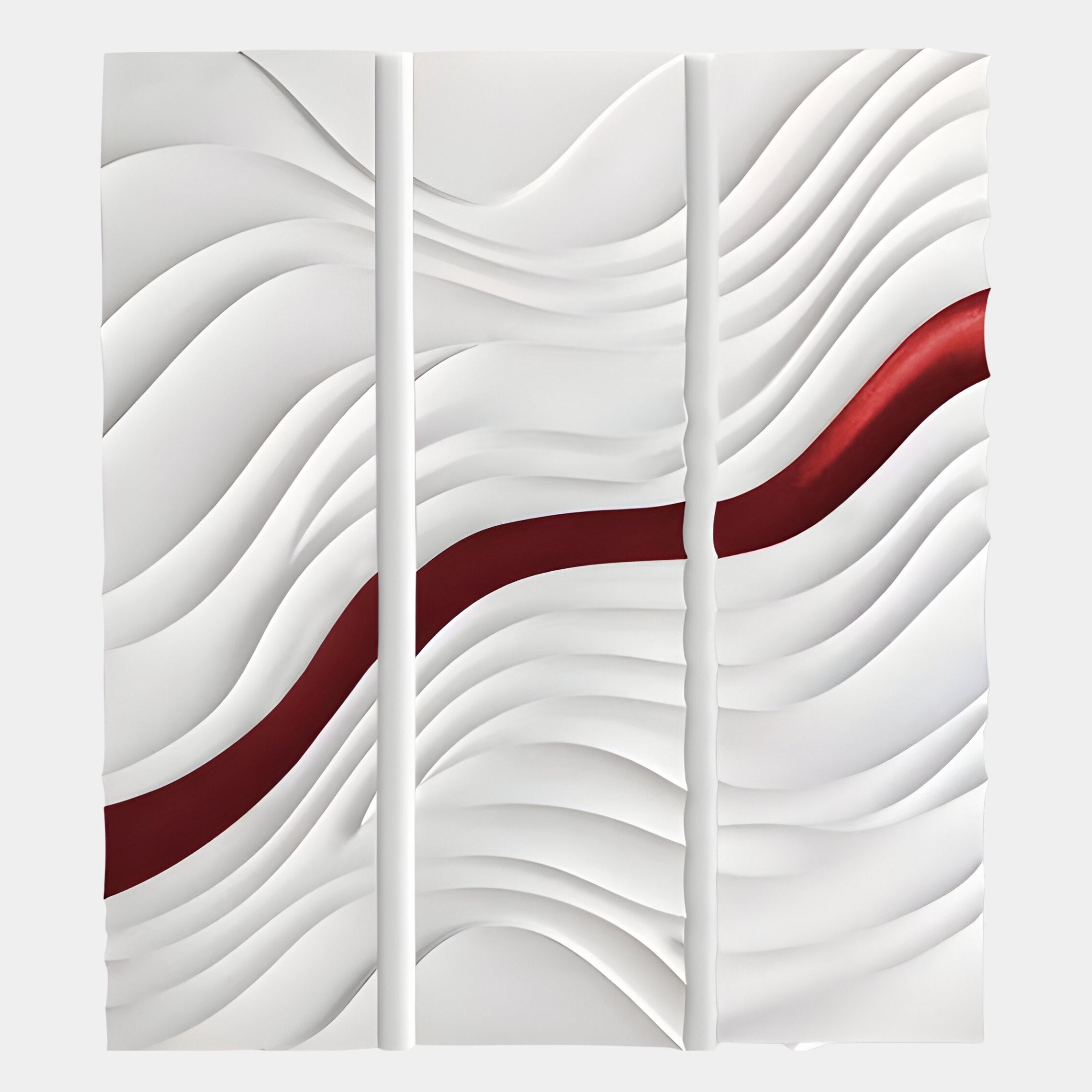 Evolva 3-Panel White & Red Wood Relief 3D Wall Art