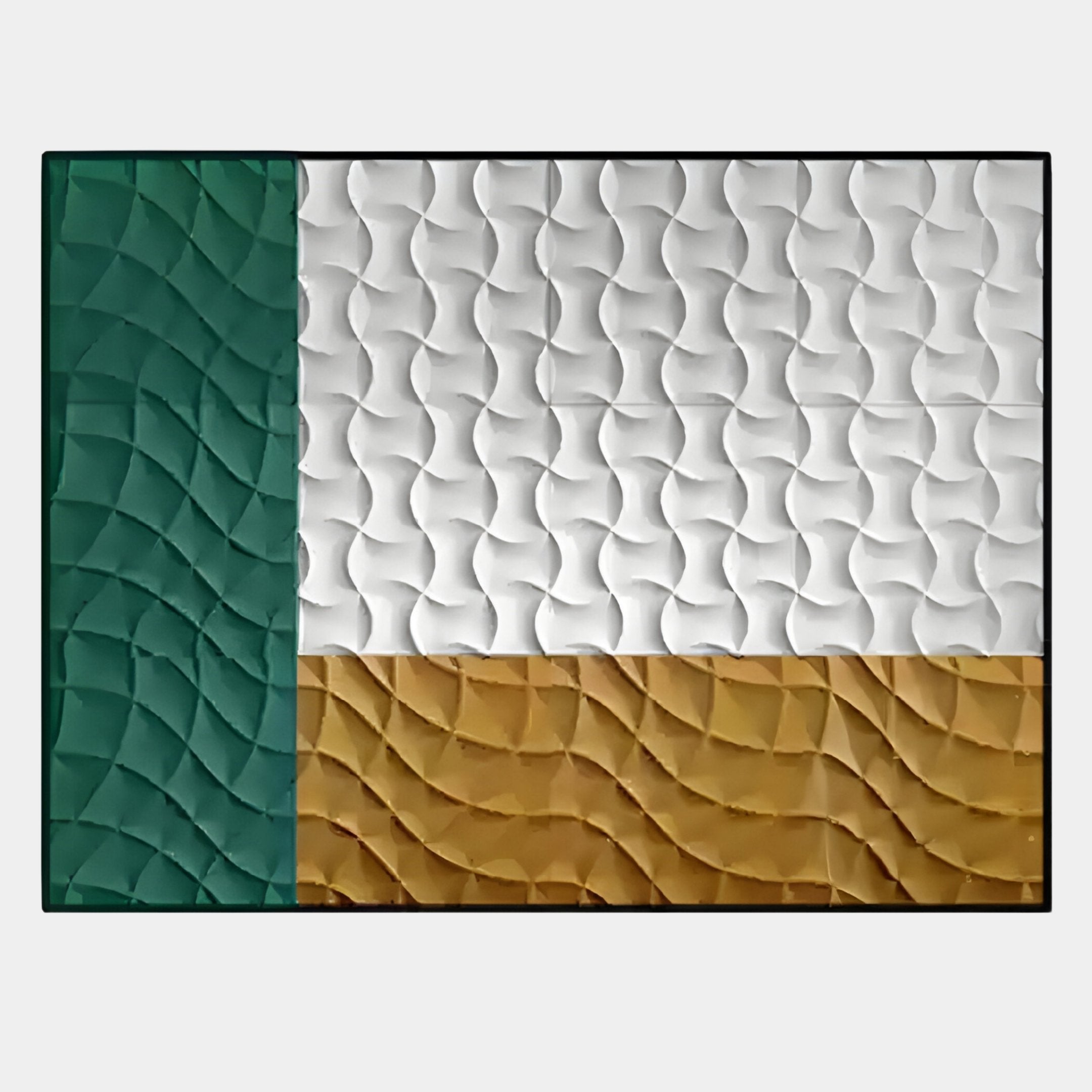 Trelume White, Green & Gold Wavy Wood Relief 3D Wall Art