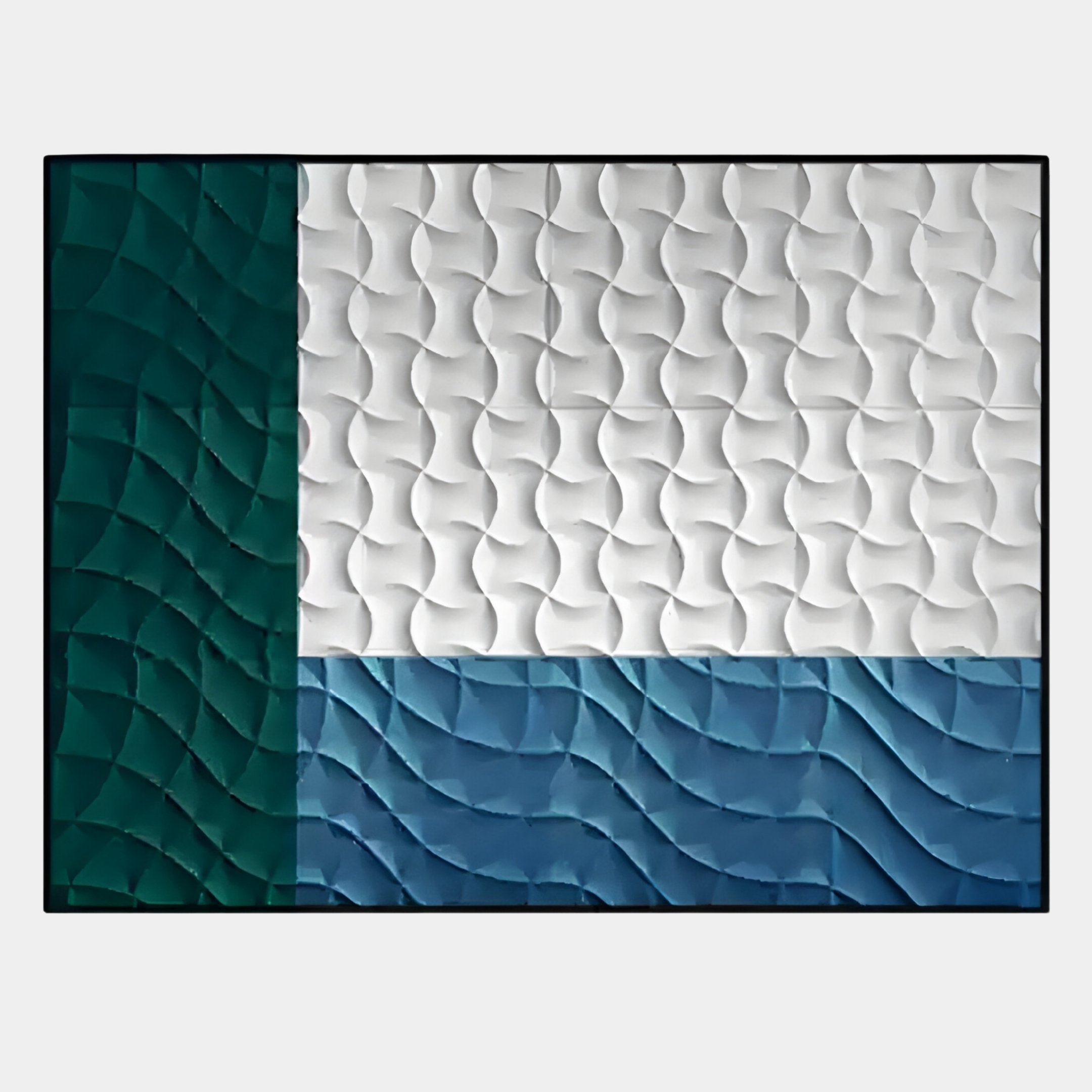 Trelume White, Teal & Blue Wavy Wood Relief 3D Wall Art
