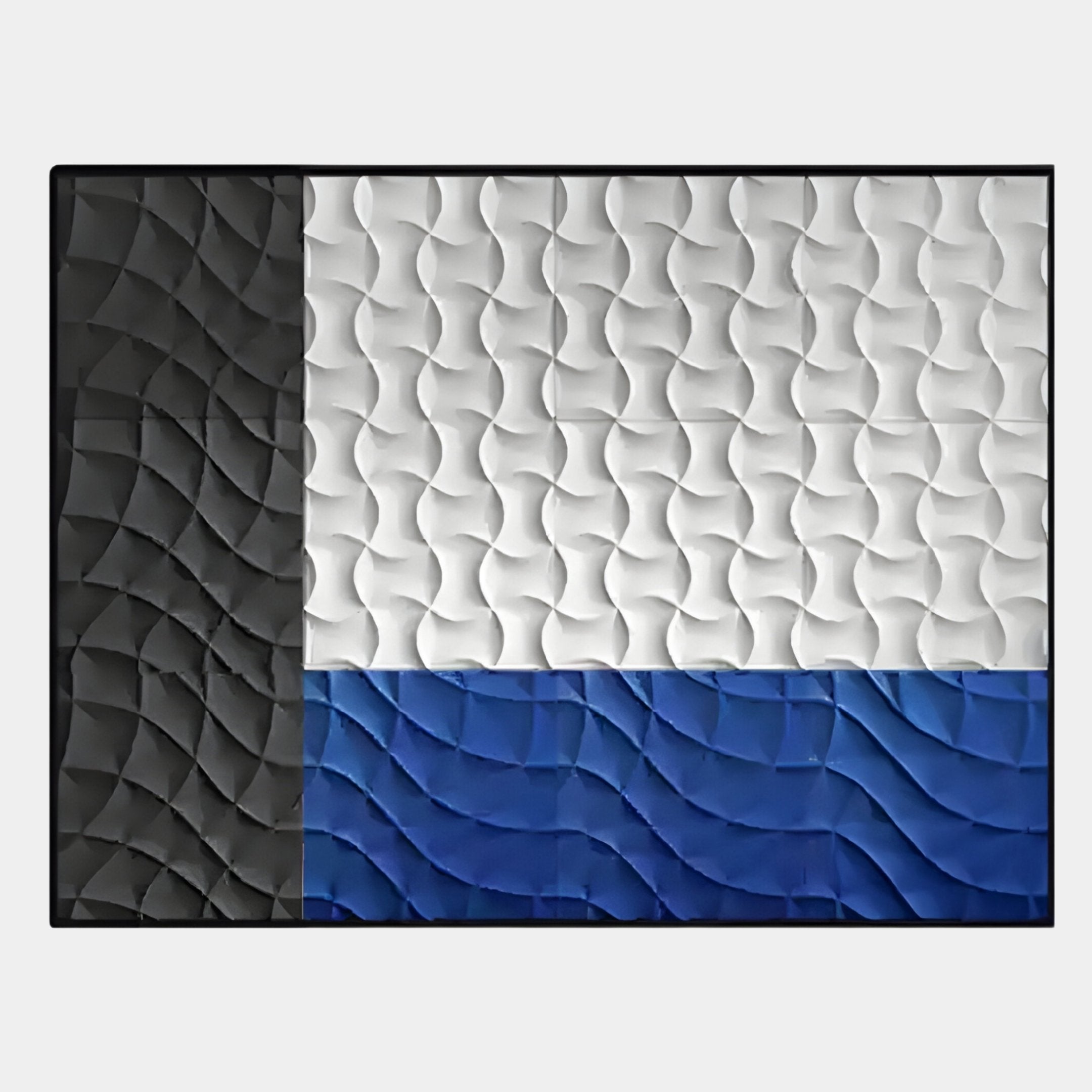 Trelume White, Black & Blue Wavy Wood Relief 3D Wall Art
