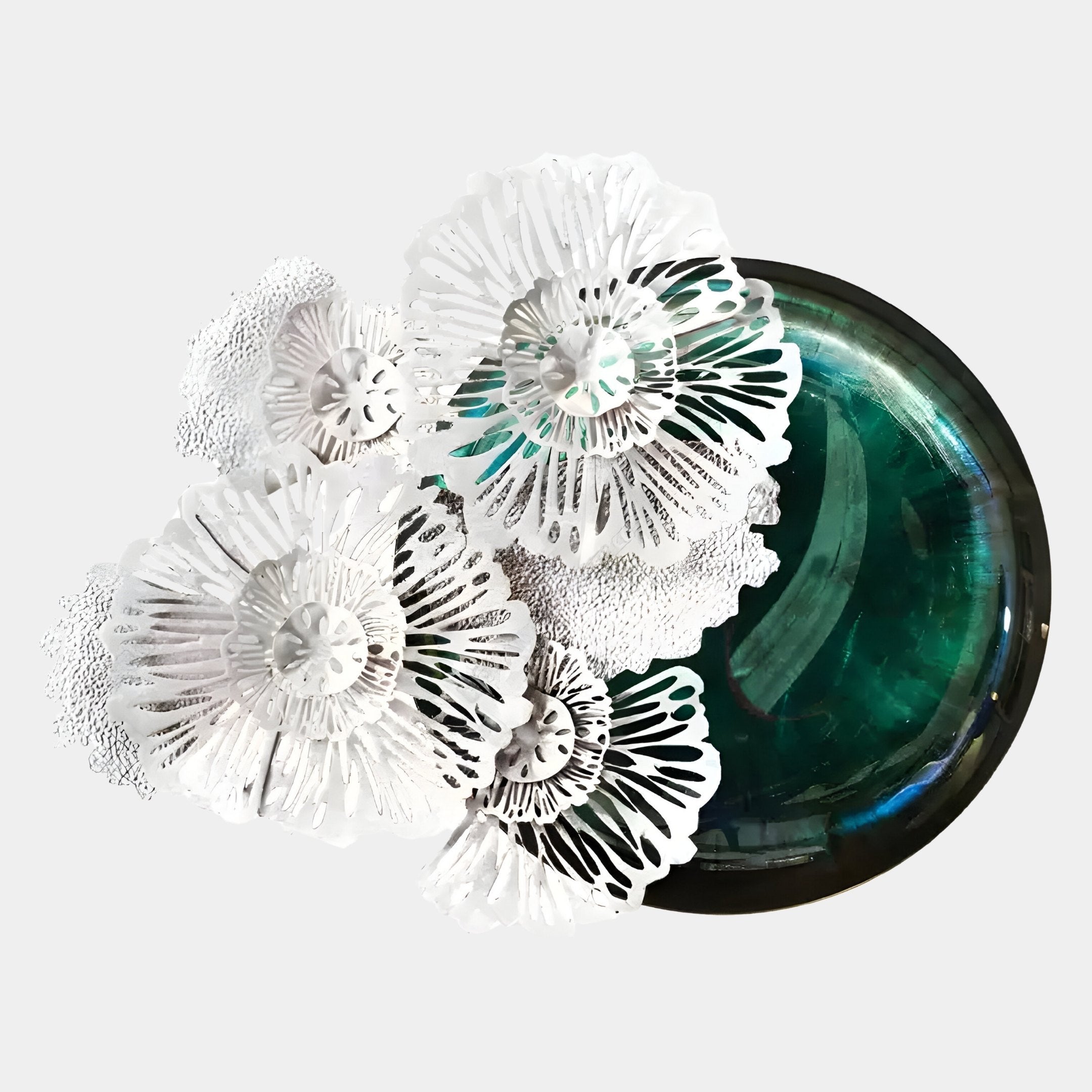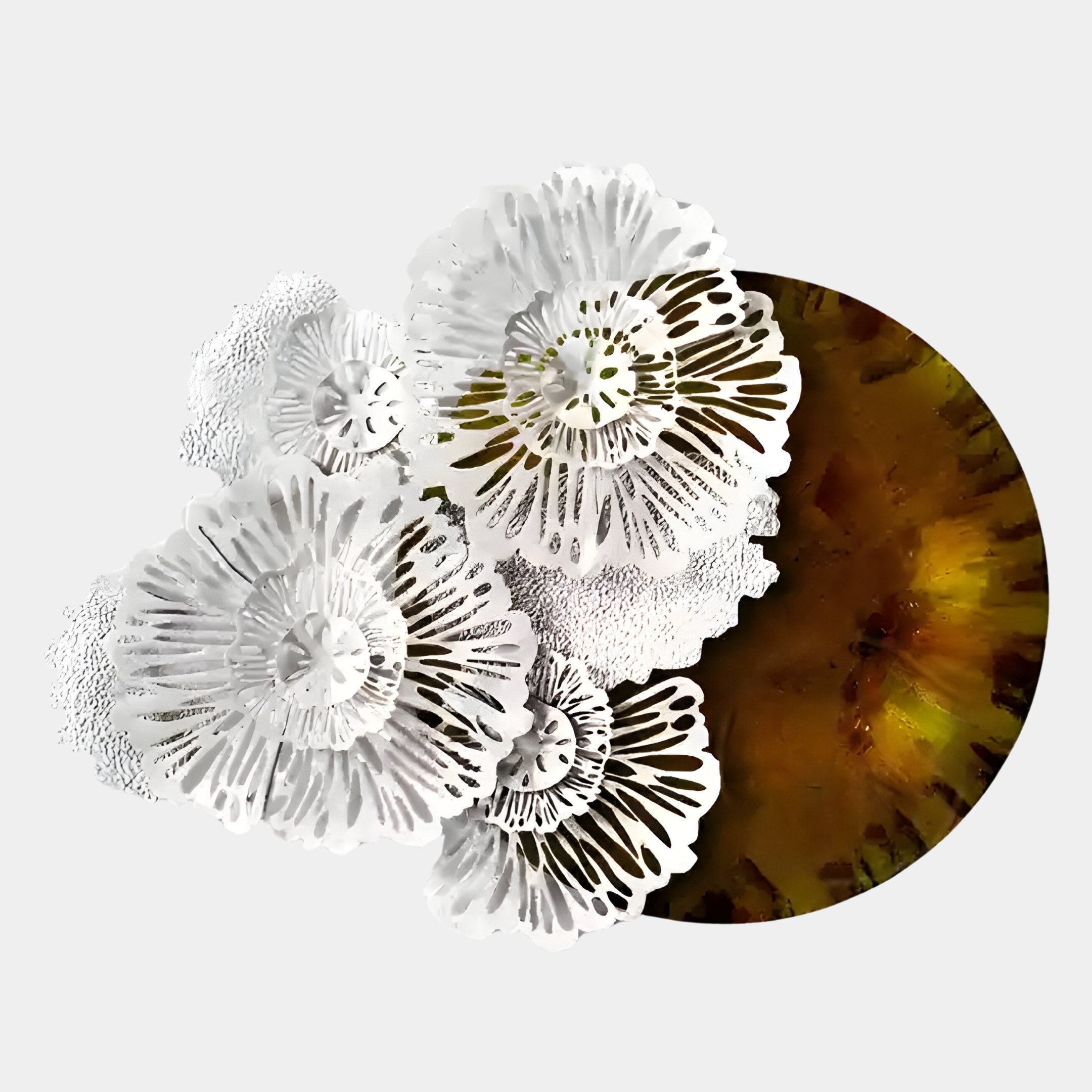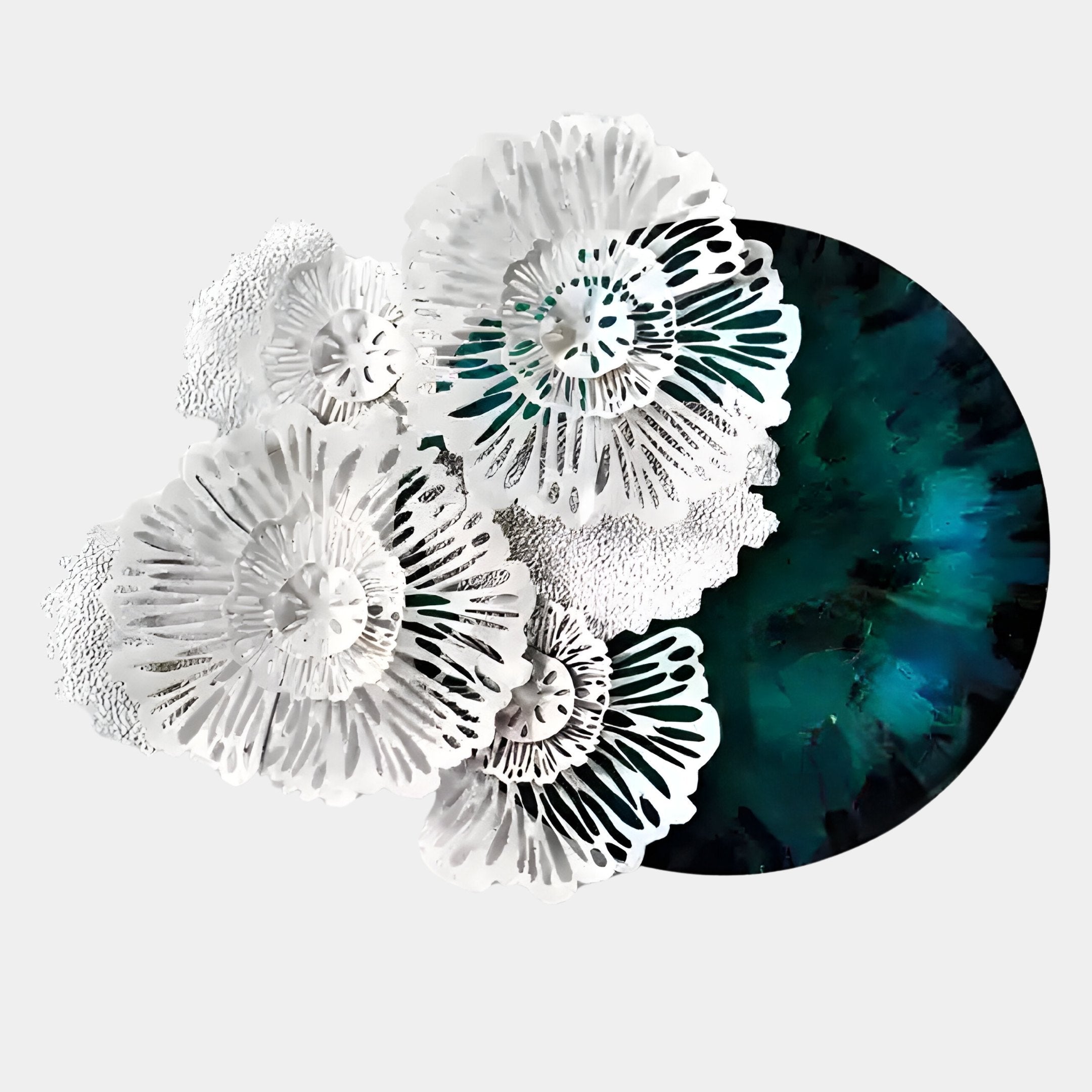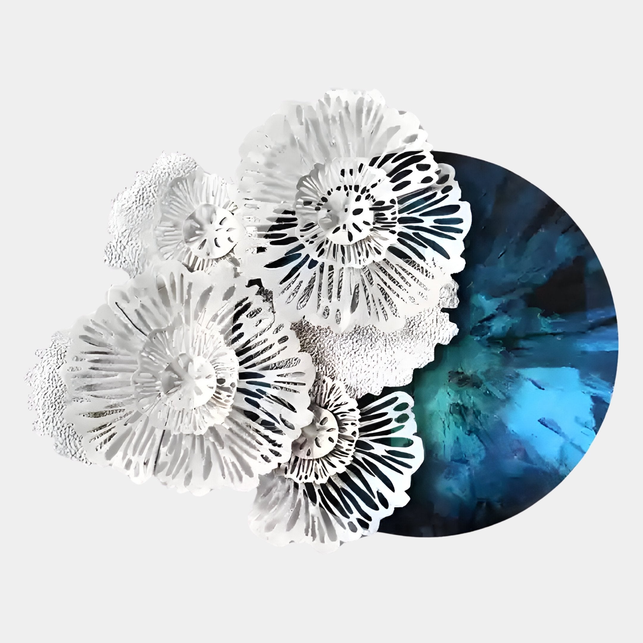Aurum Flora White Petals Sapphire Metal Wall Art