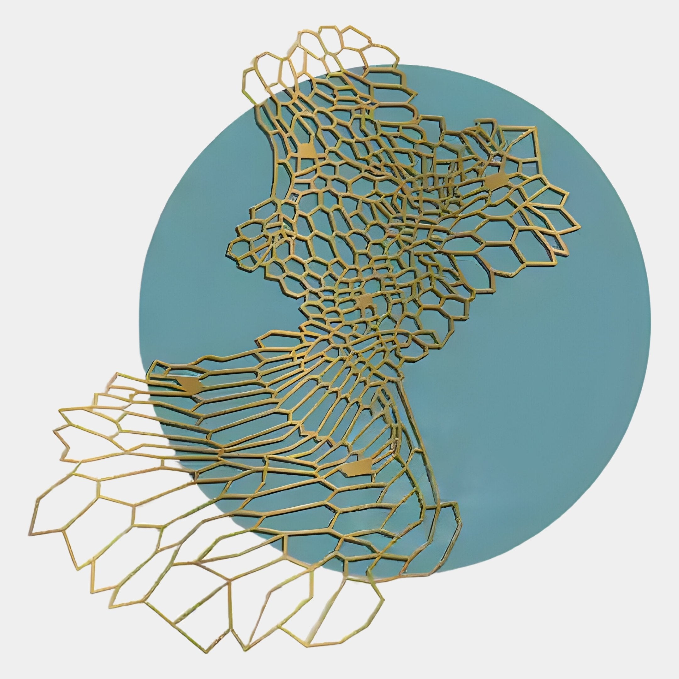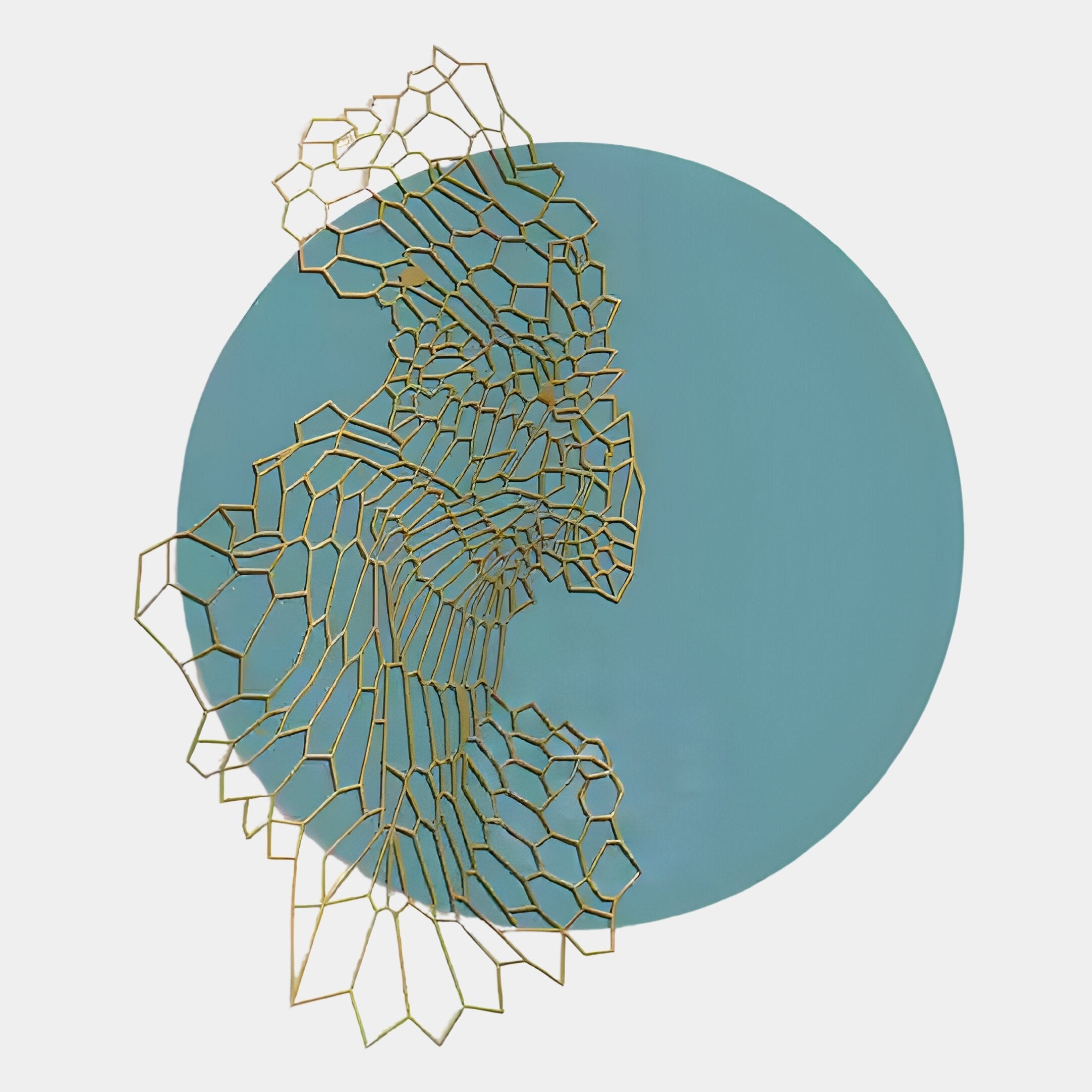 Cellura Turquoise Geometric Flow Gold Wired Metal Wall Art