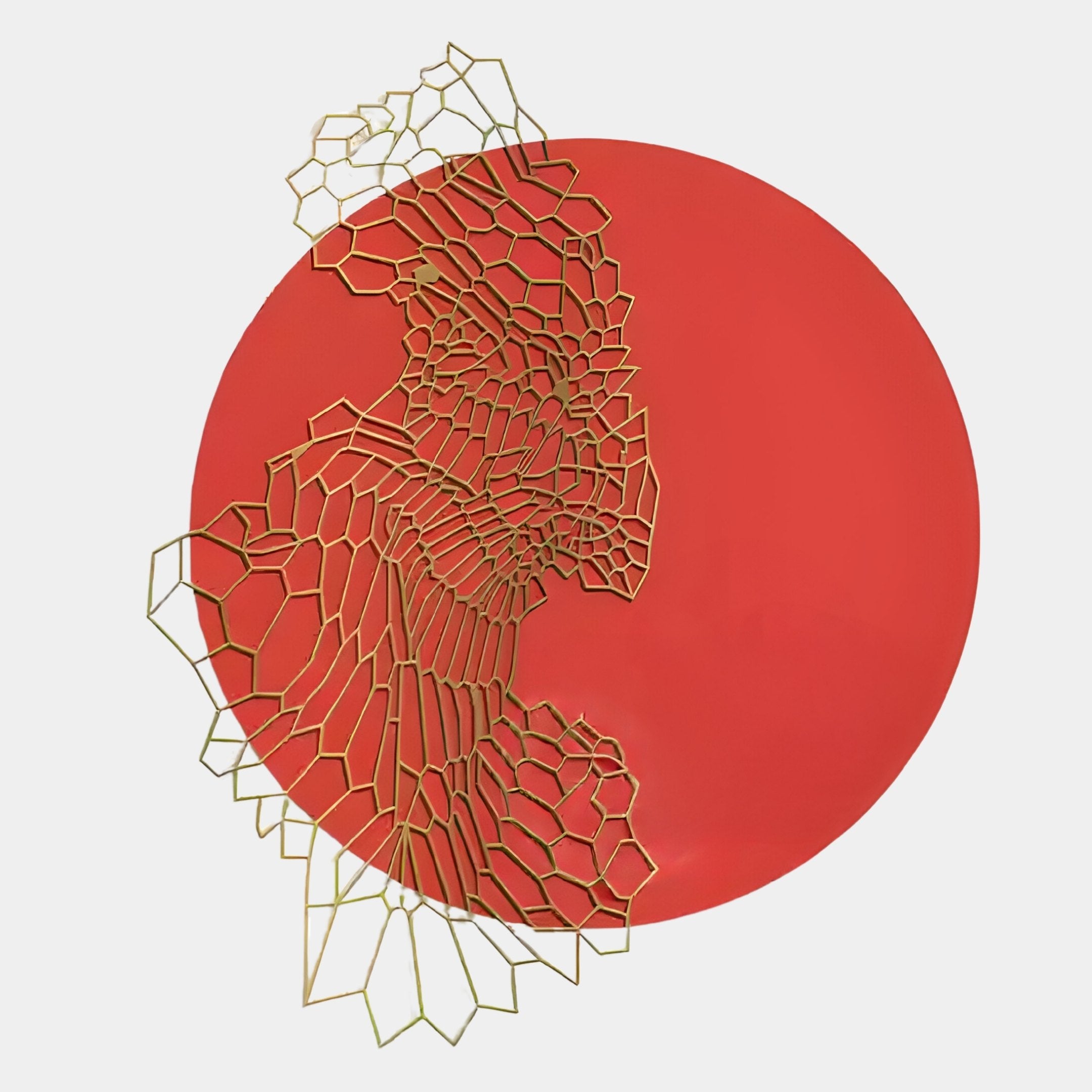 Cellura Red Geometric Layered Gold Wired Metal Wall Art