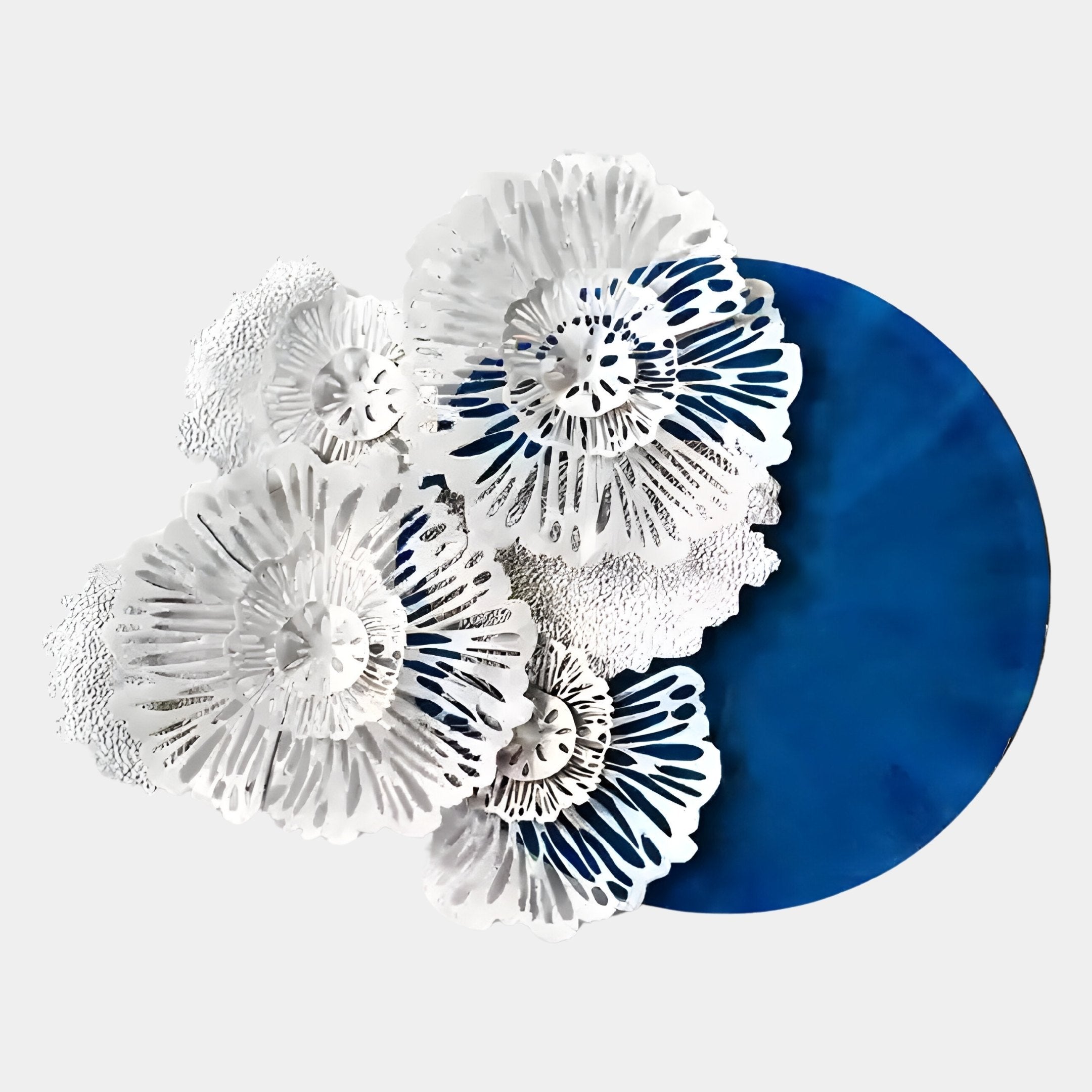 Aurum Flora White Petals Cobalt Blue Metal Wall Art
