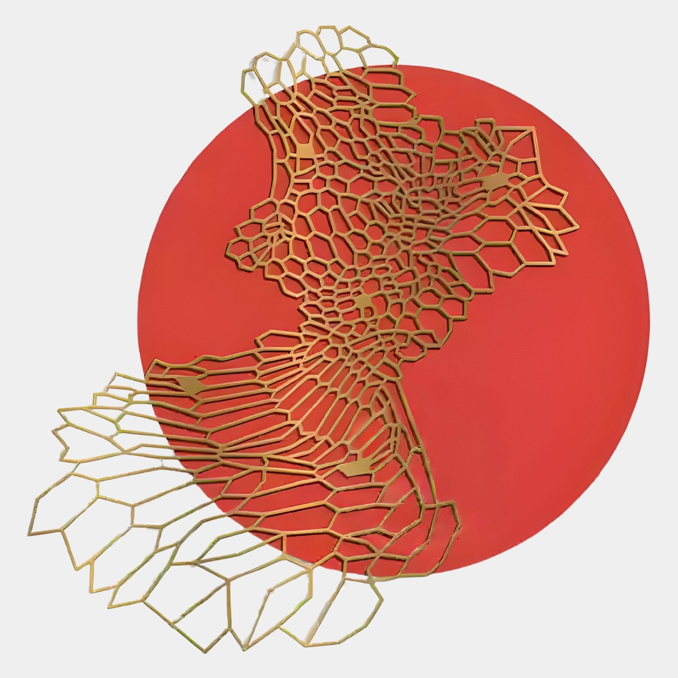 Cellura Red Geometric Flow Gold Wired Metal Wall Art