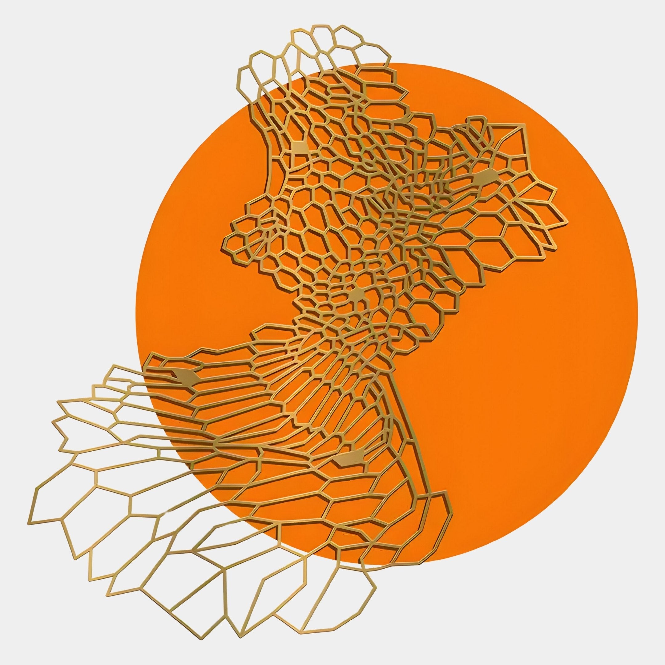 Cellura Orange Geometric Flow Gold Wired Metal Wall Art