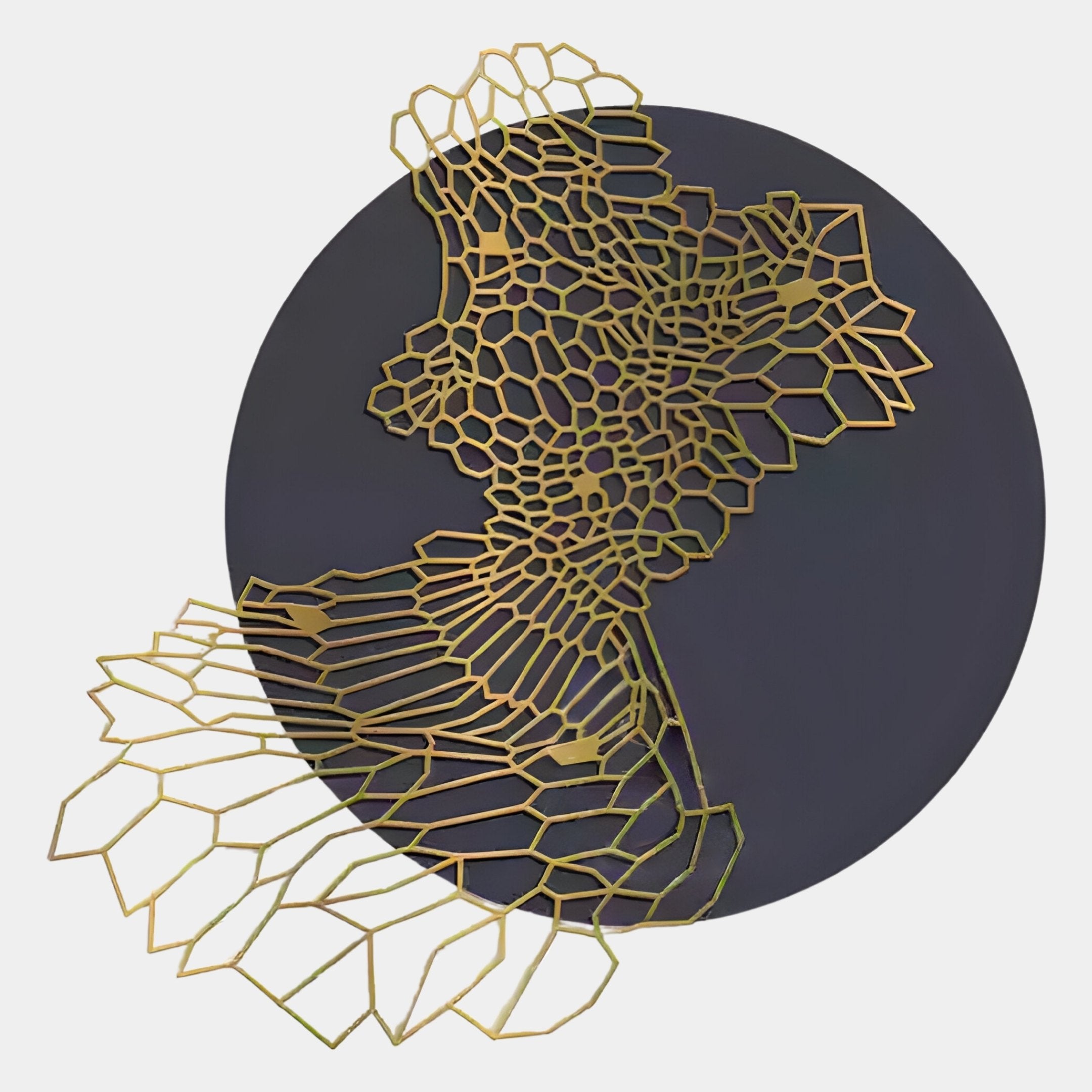 Cellura Deep Purple Geometric Flow Gold Wired Metal Wall Art