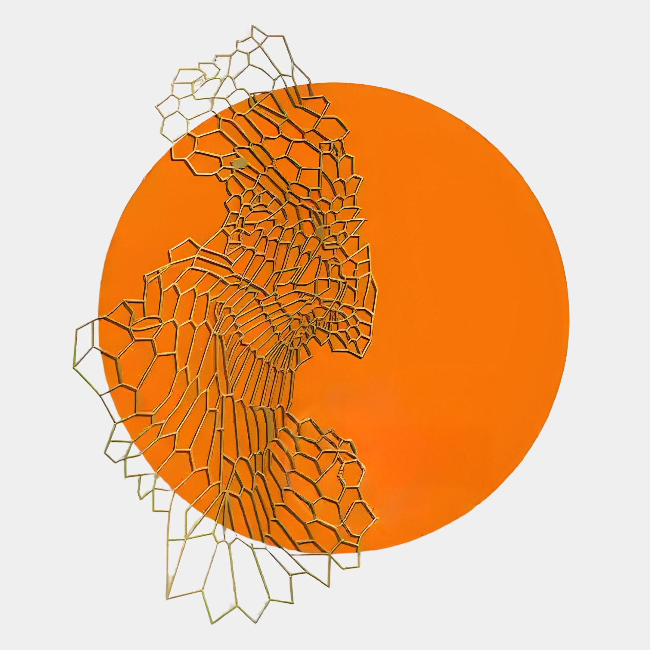 Cellura Orange Geometric Layered Gold Wired Metal Wall Art