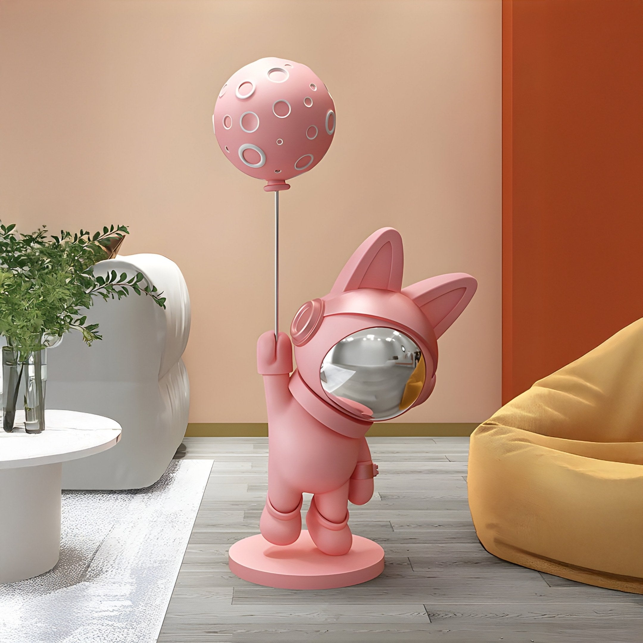 Add a cheerful cosmic twist to your interior with the Candy Pink Astronaut Bunny Moon Balloon Sculpture, standing 100cm tall. This resin figure fuses the playful form of a bunny with an astronaut’s helmet, featuring a reflective visor that catches the light. A balloon shaped like the Moon floats above, adorned with crater-like patterns for a whimsical nod to outer space. The candy pink hue adds a bright, welcoming vibe, making this piece an eye-catching focal point wherever it’s placed. Each detail, from the bunny’s upright ears to the balloon’s rounded contours, reflects a thoughtful approach to design. Whether you’re drawn to space-themed décor or simply enjoy imaginative ornaments, this sculpture offers a unique way to spark conversation.