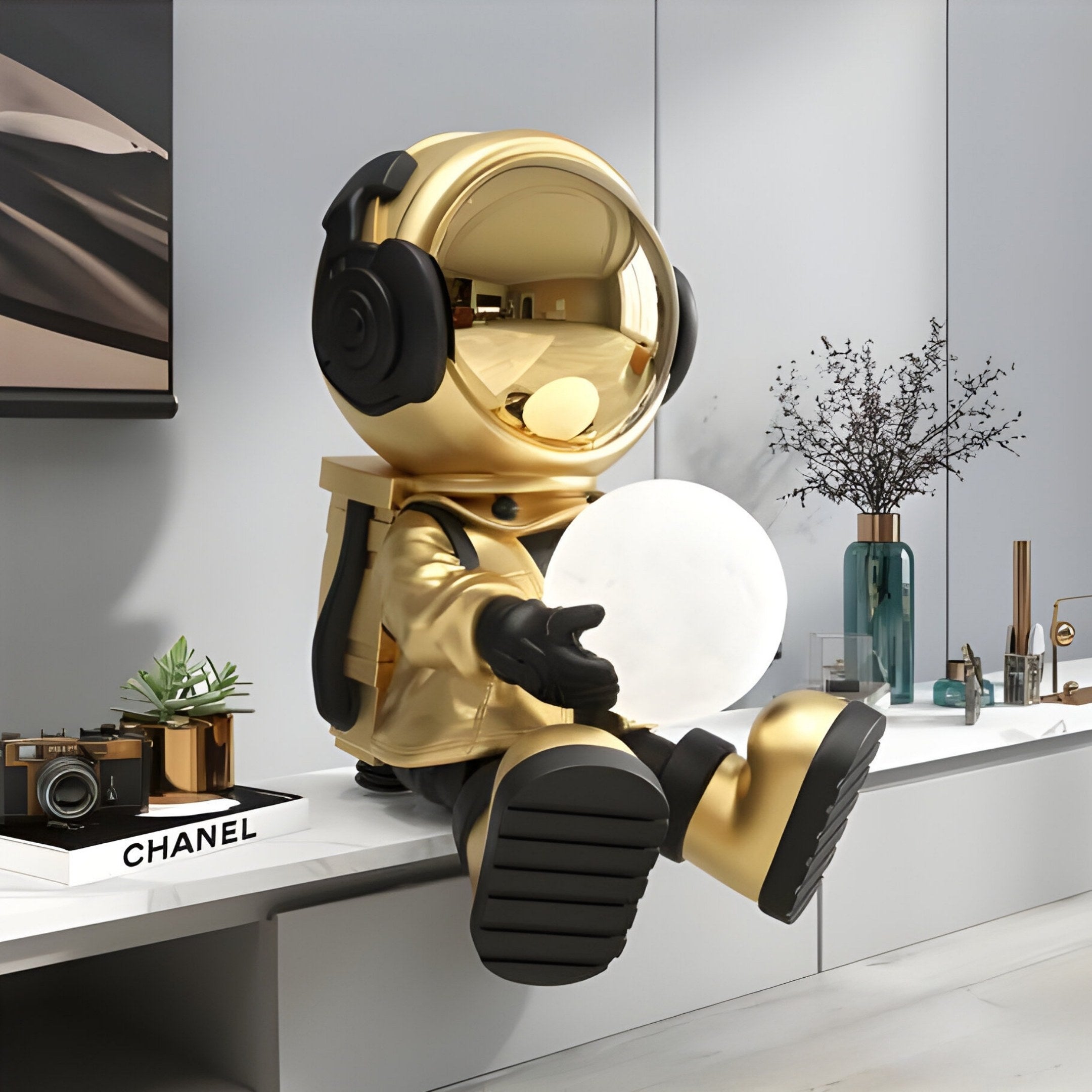 Place the sculpture where its subtle illumination can be fully appreciated, perhaps near a lounge chair, along a hallway, or by a reading nook. With four-colour lighting options, it’s easy to create the ambience you want, whether you prefer a warm glow for relaxation or a cooler hue for a more contemporary vibe. Though visually engaging, the 53 cm height prevents it from overwhelming your existing décor, ensuring a harmonious fit. If you enjoy décor that combines novelty with practical function, the Celestial Gold Astronaut Glow Seated II Sculpture is a fitting choice. It demonstrates how even a functional lamp can spark curiosity, serving as both a conversation starter and a handy source of light. From laid-back nights at home to lively get-togethers, this piece adapts seamlessly, offering a sense of interstellar wonder whenever you need it.